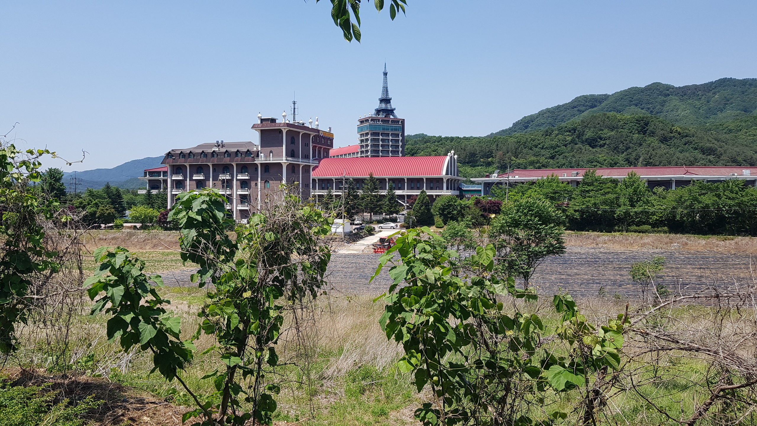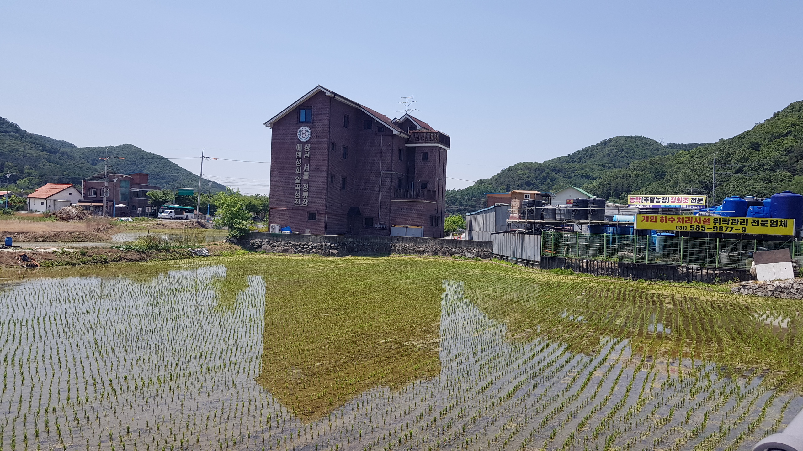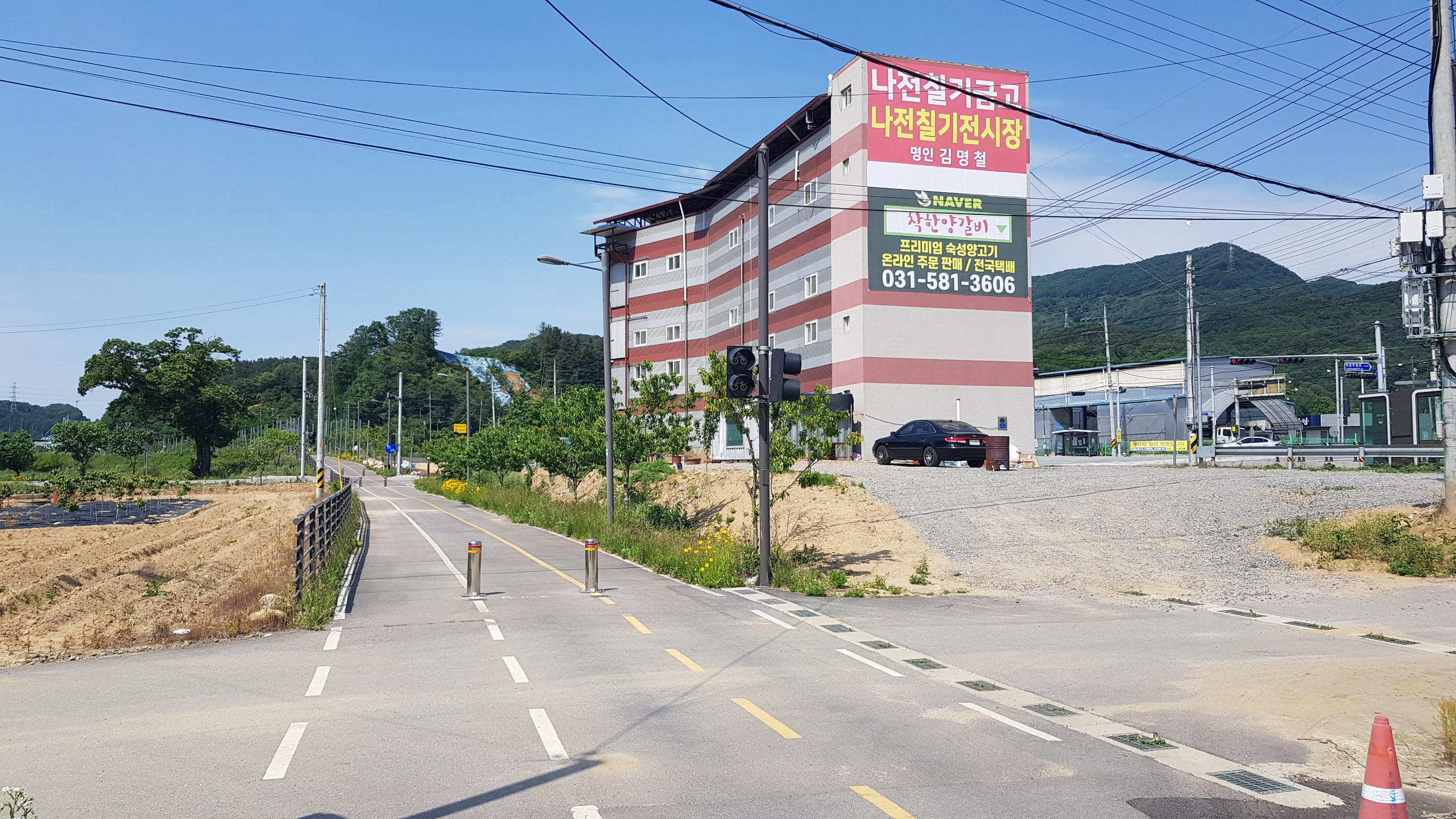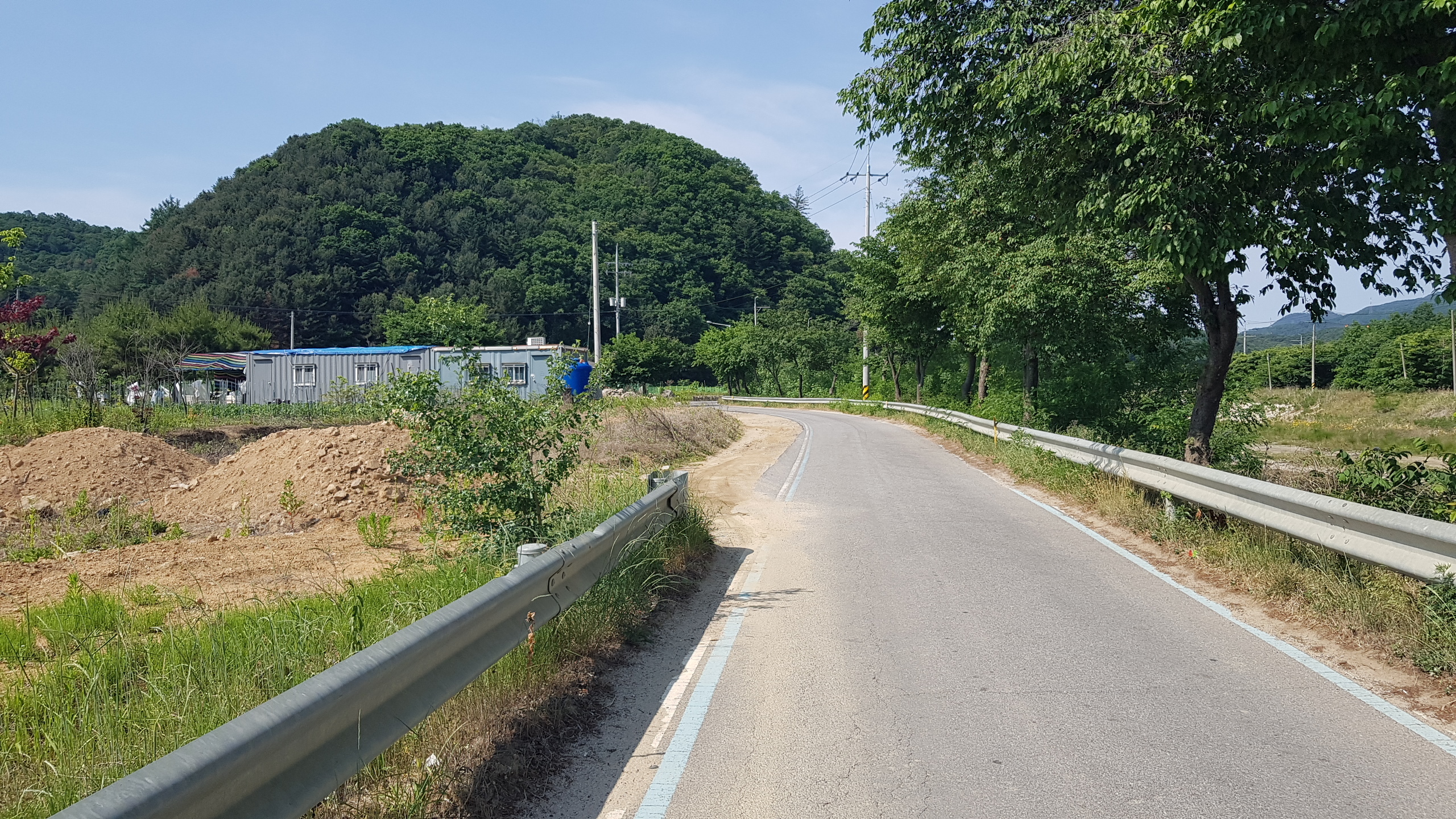 스탬프정리를 하고 길 건너 버스정류장에서 목동터미널 가는 버스시간을 검색하고 우회전하여 현대건설(힐스테이트) 쪽으로 이동하여 터널을 지나서 달전천의 달전교에 까지 이동하고 좌회전하면 상천역 8.5km 가평역 0.5km 이정목을 만나고 달정천 벛꽃길 따라 진행하여 하색1교에 도착하고 하색1교를 건너면 상천역 7.5km 이정목이 있는 북한강자전거길 삼거리에 도착하여 좌회전하여 자전거길 옆의 산책로로 이어가다 이방실장군묘 2.0km 알곡종합운동장 20.km 갈림길(이정목)을 지나고 포회촌(개미데미) 1.8km 이정목에 도착하면 초아의봉사라 새겨진 입석이 있다.