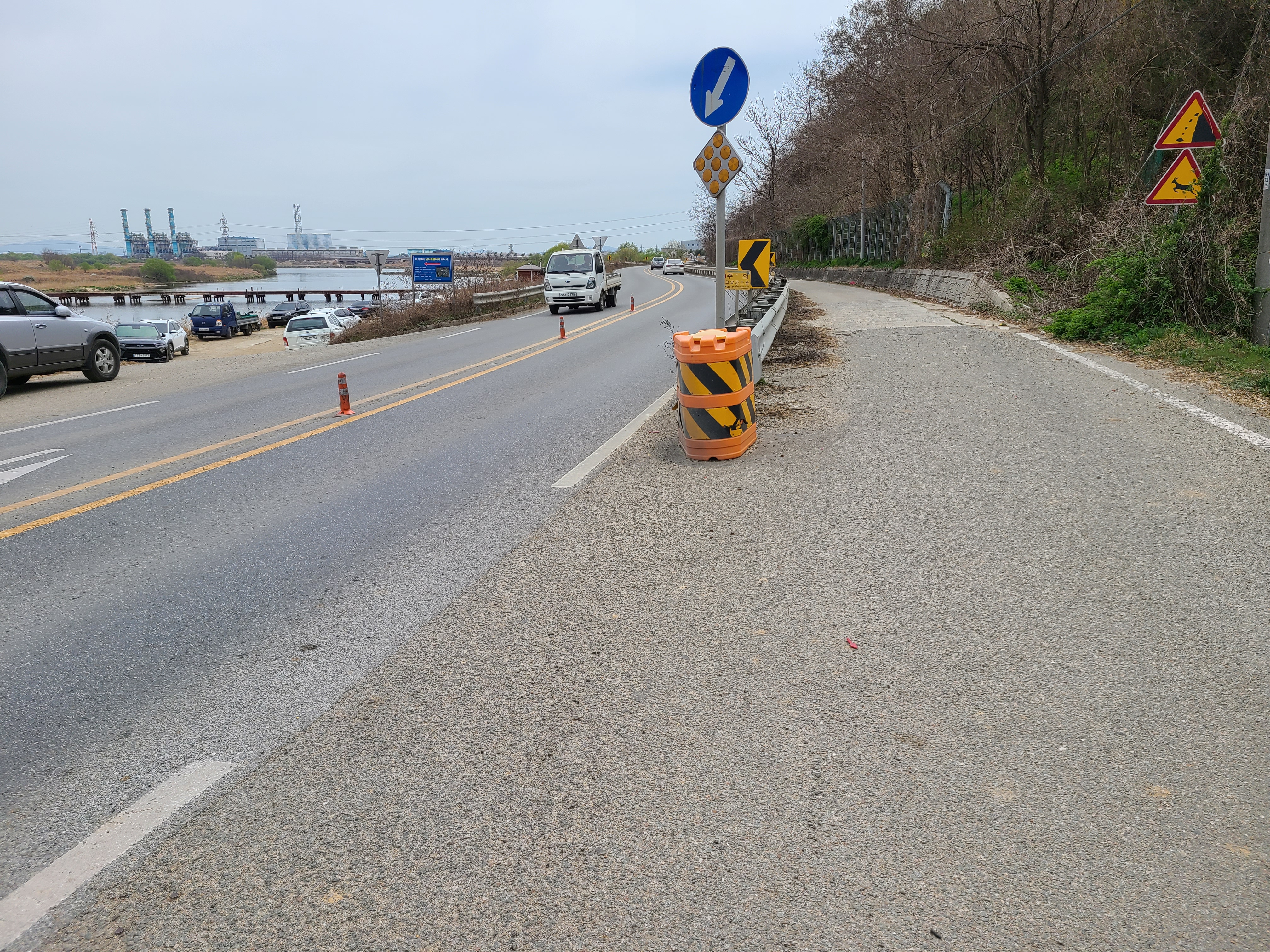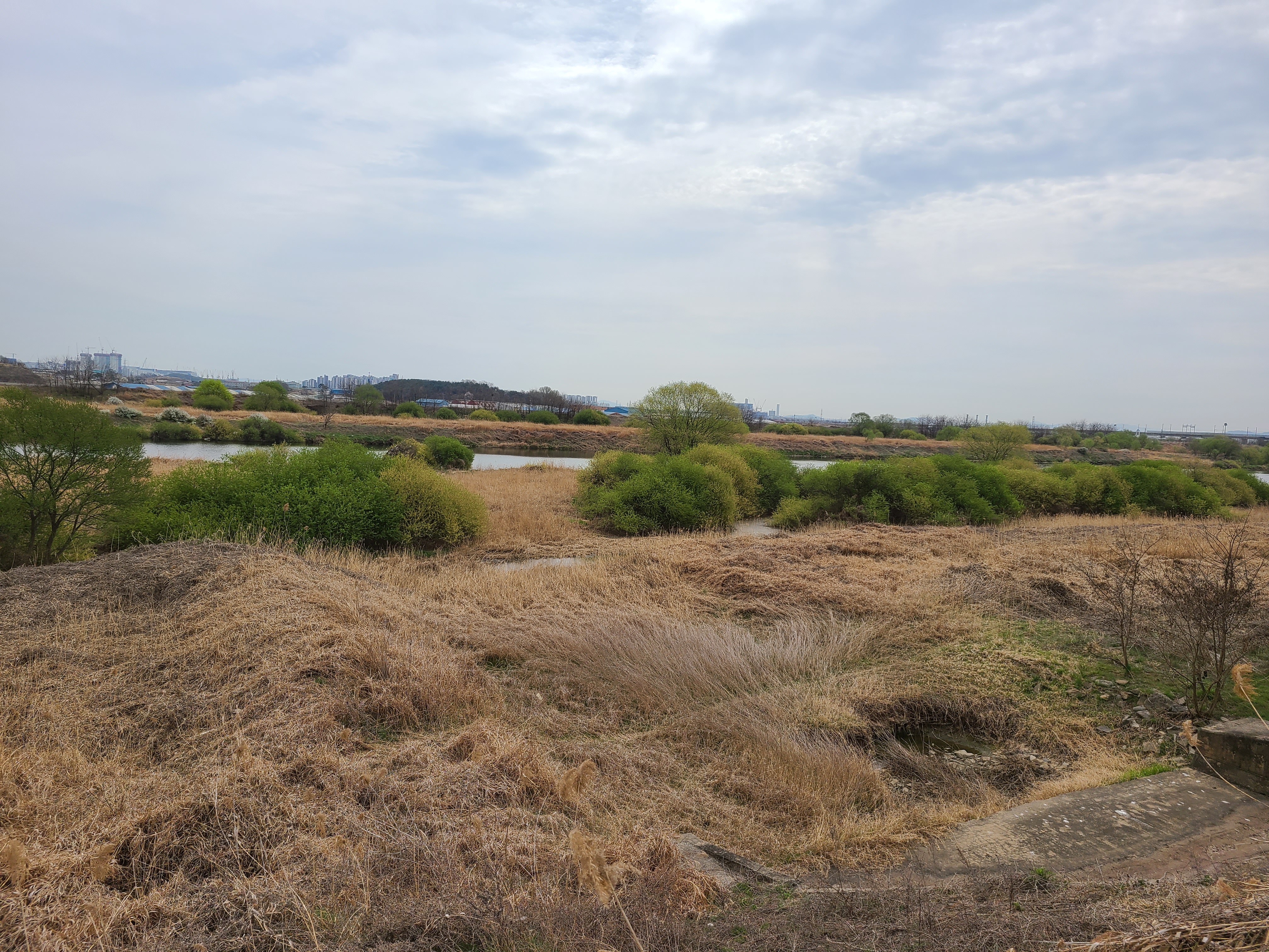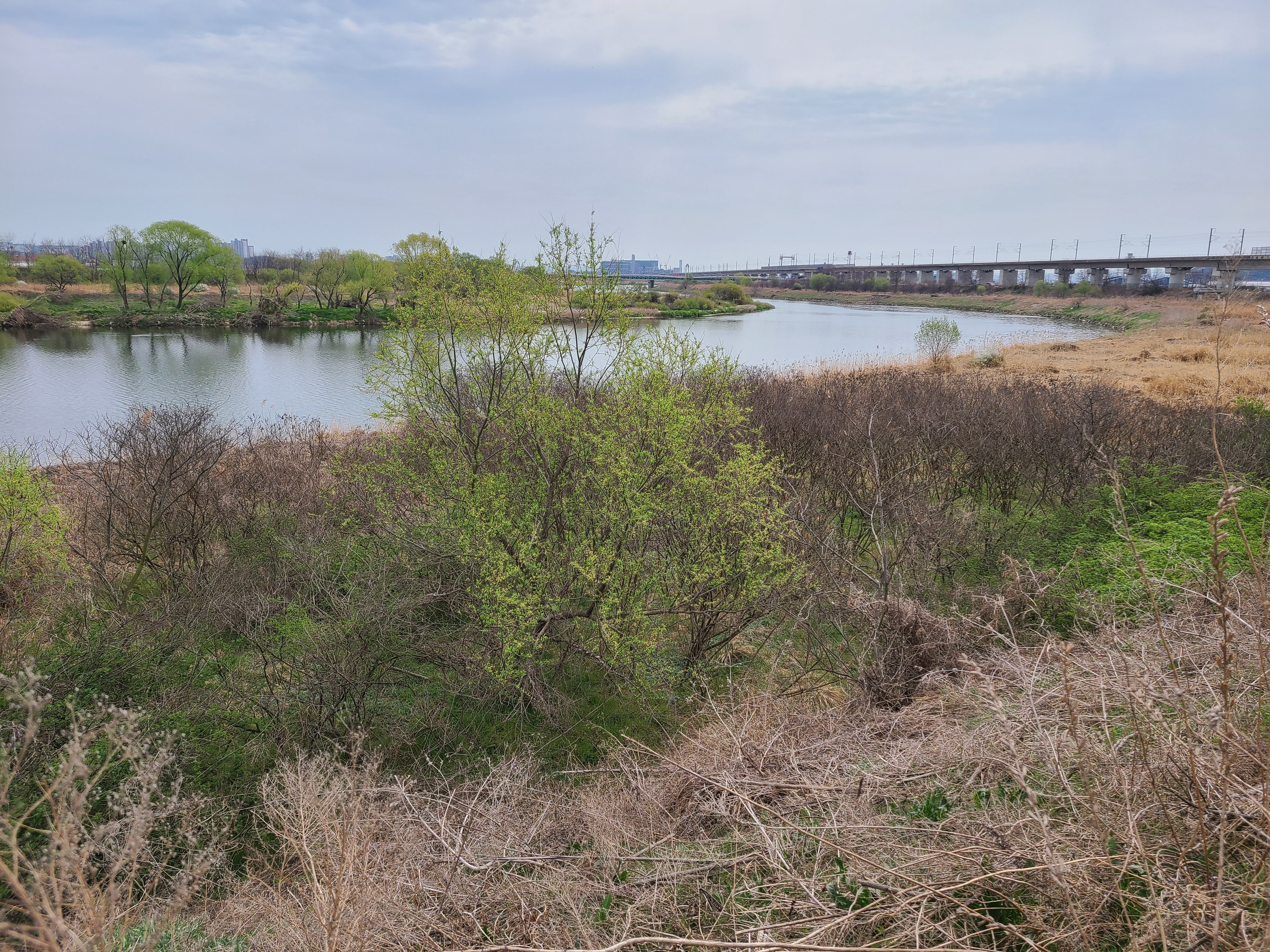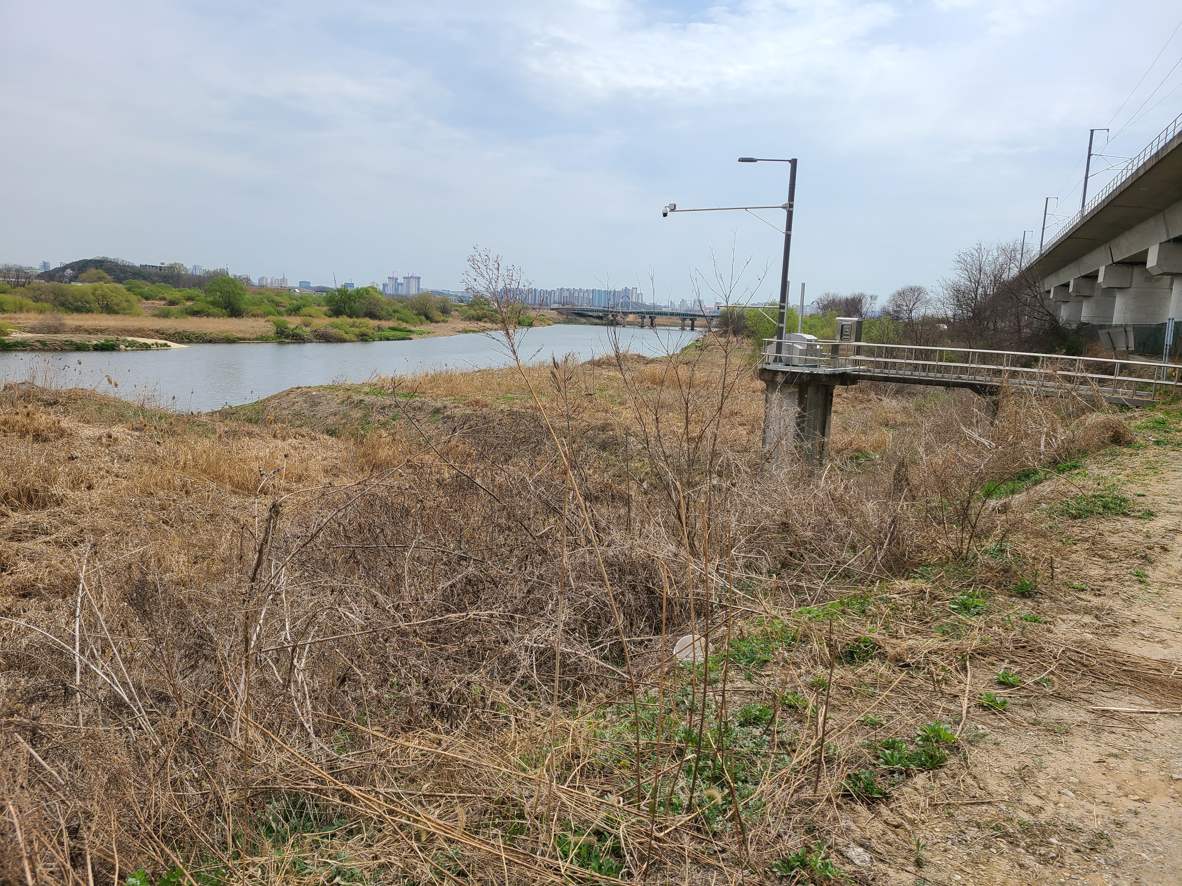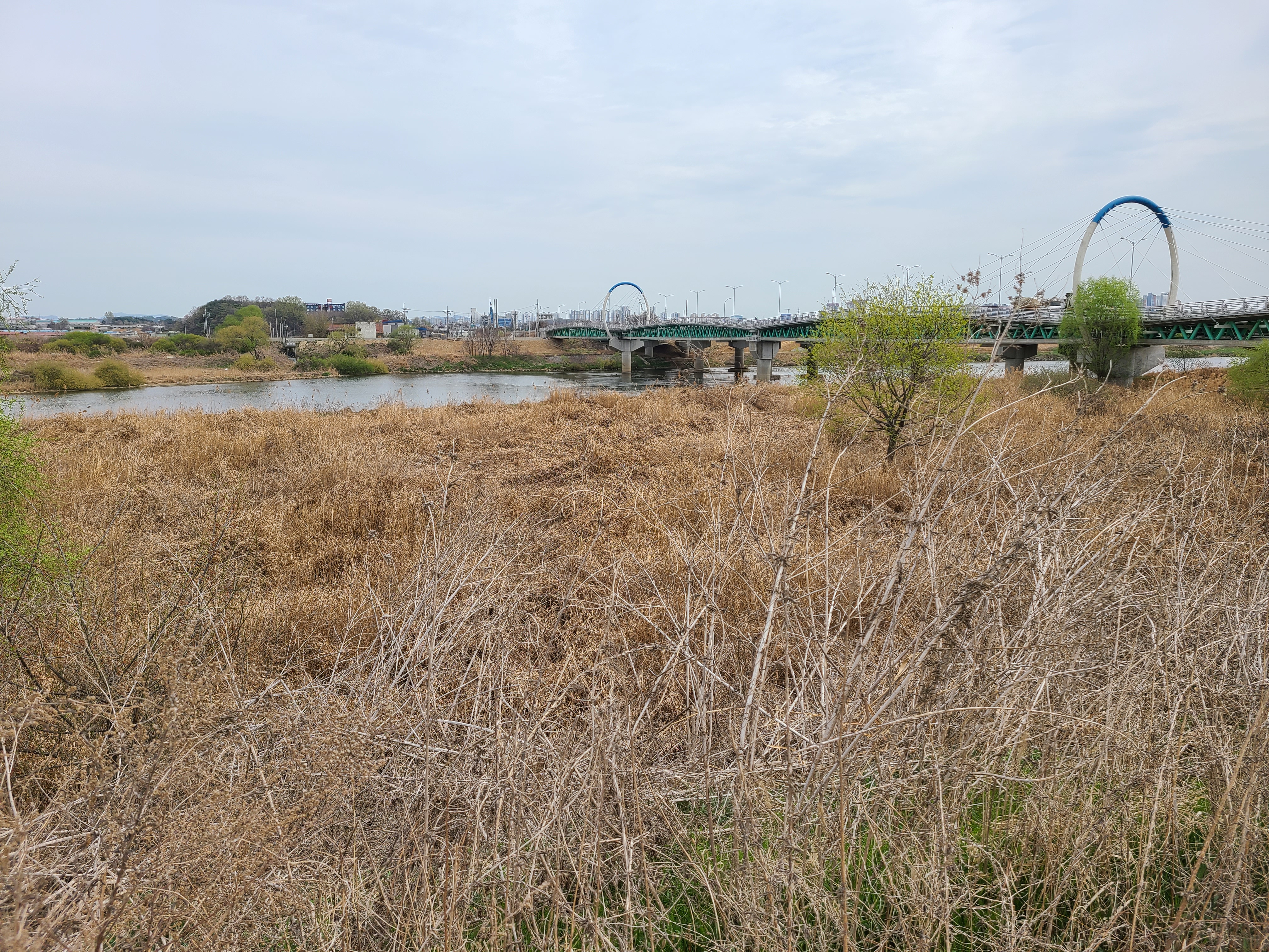 둑길로 이동하다 황구지교를 만나 다리아래로 이동하고 계속 둑길로 이동하면 우측의 315번도로로 진입하는 갈림목을 지나고 우측 길 건너에 보이는 한일이동타워도 지나고 율북1배수문 율북2배수문 율북3배수문도지나 동연교에 도착하여 동연교차로를 지나 철로 아래에서 휴식을 취한다.