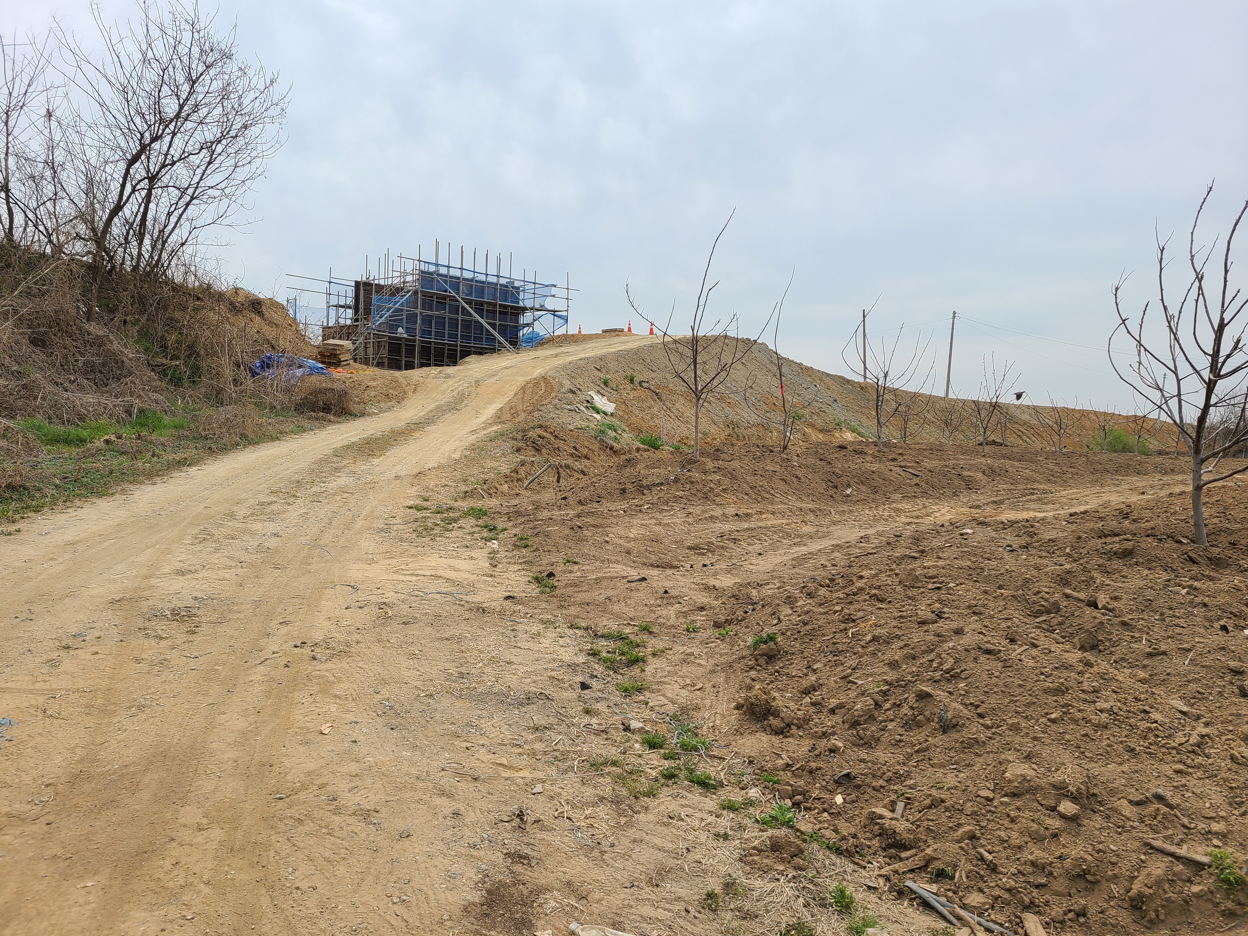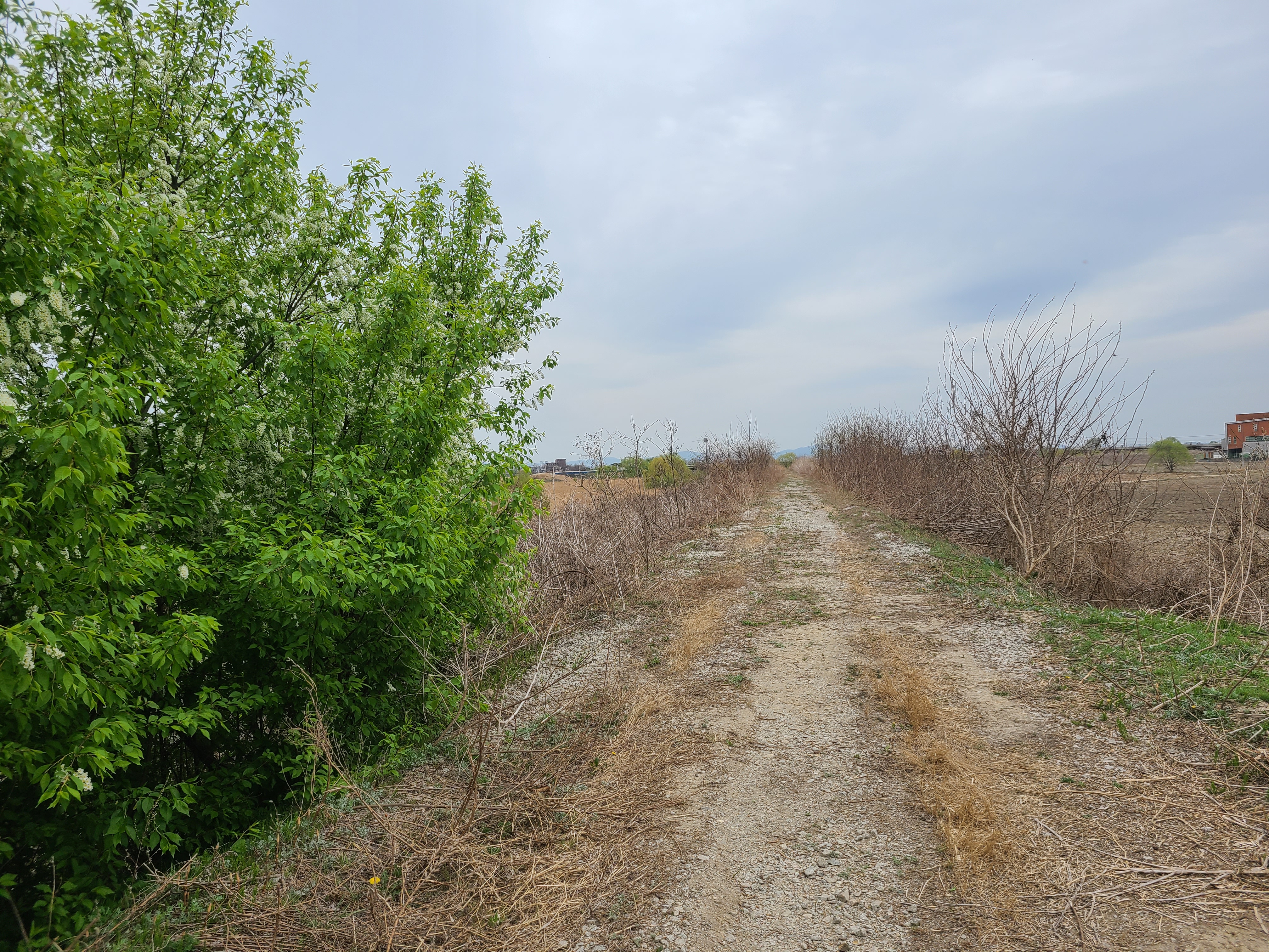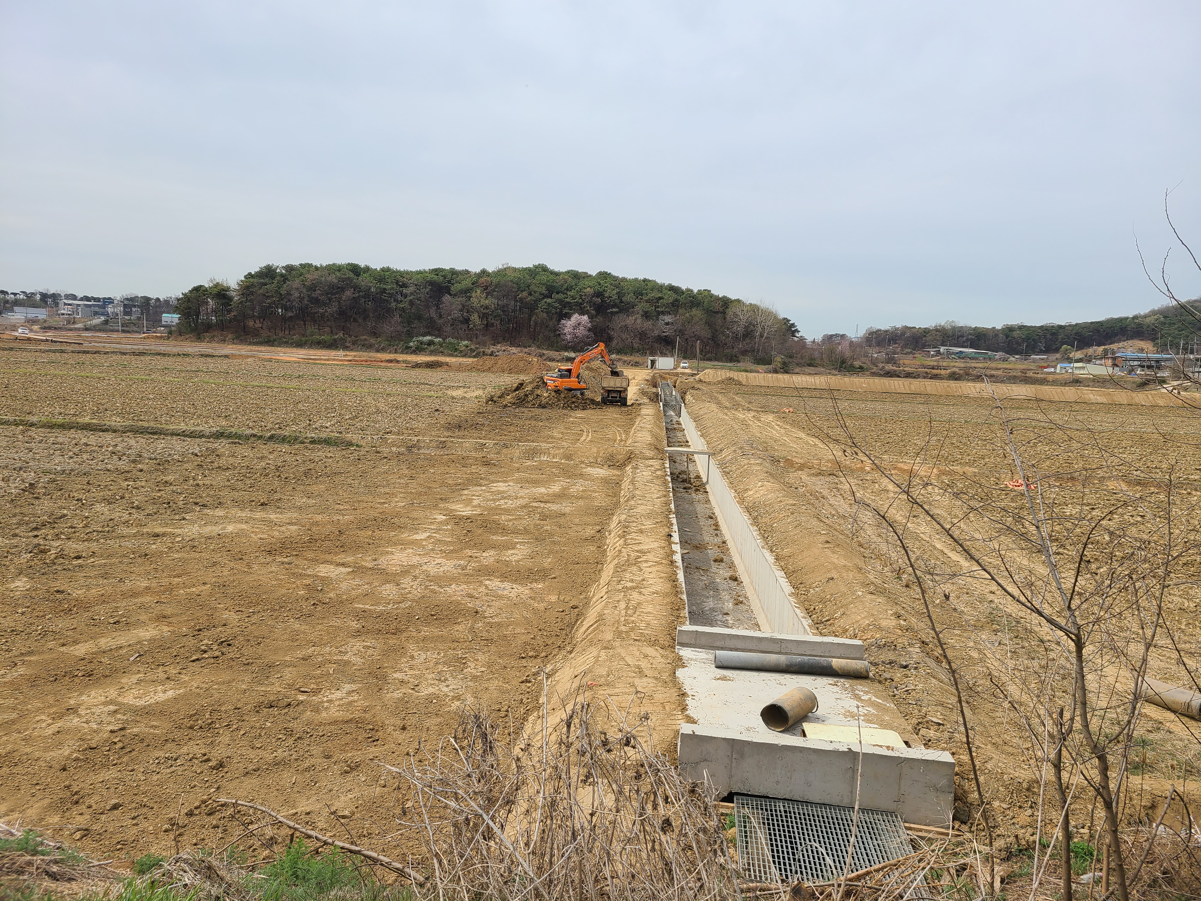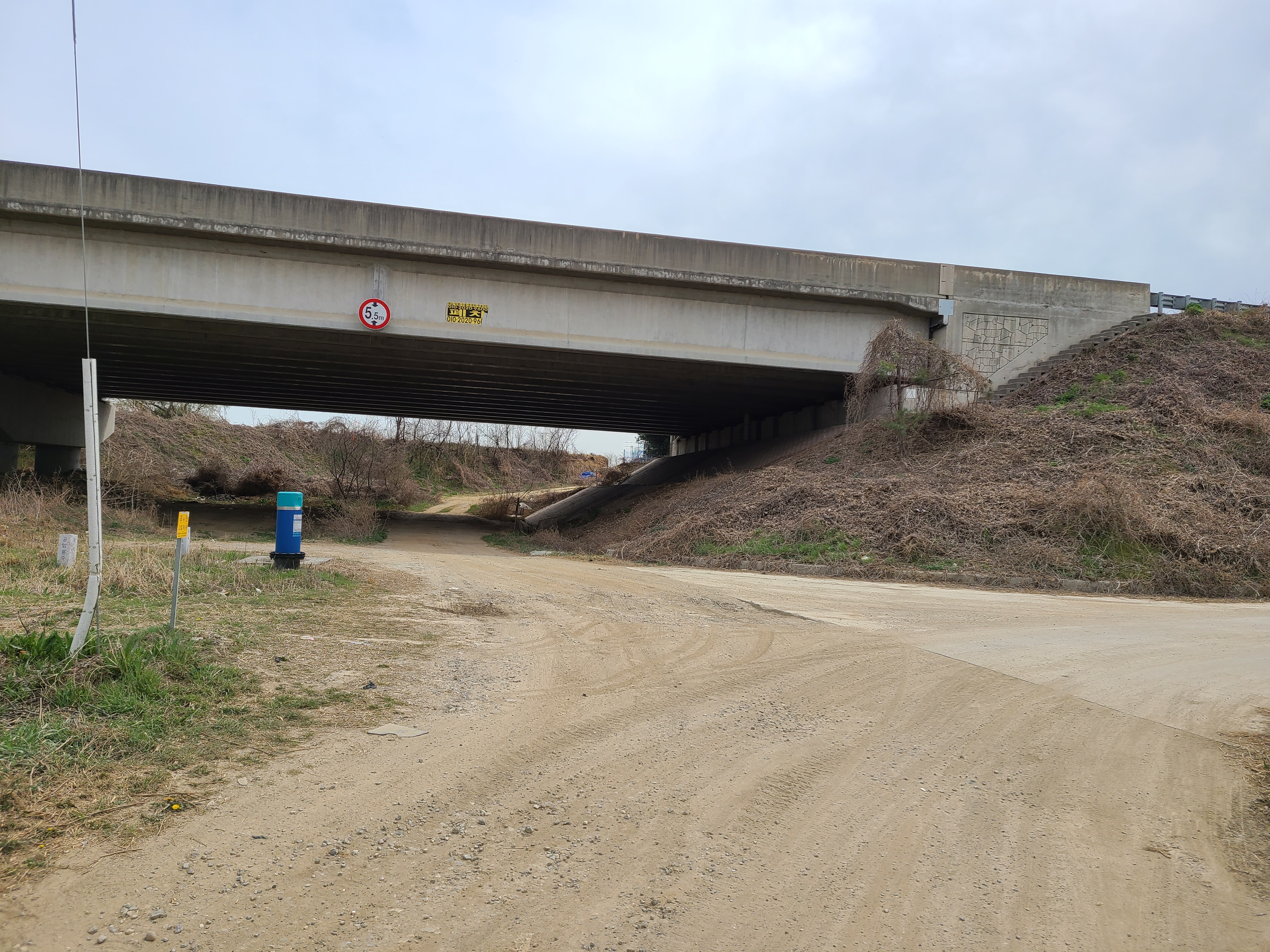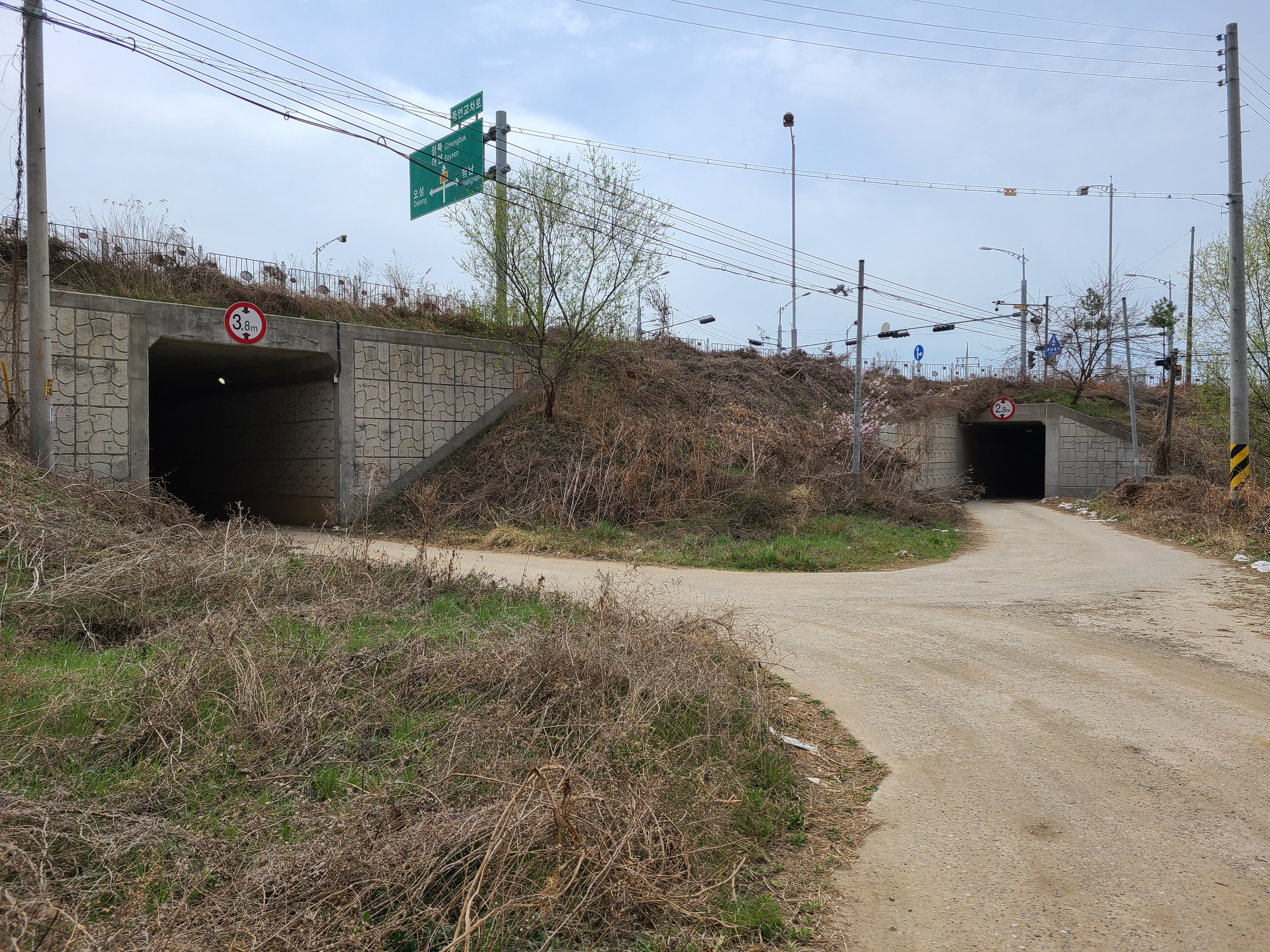 버스정류장에서 길 건너 농로를 따라 이동하여 길목길 다리를 건너 좌회전하여 비닐하우스를 끼고 둑길로 이동하여 평택-화성고속도로 아래를 지나 공사중인 진위천 둑길로 올라선다.