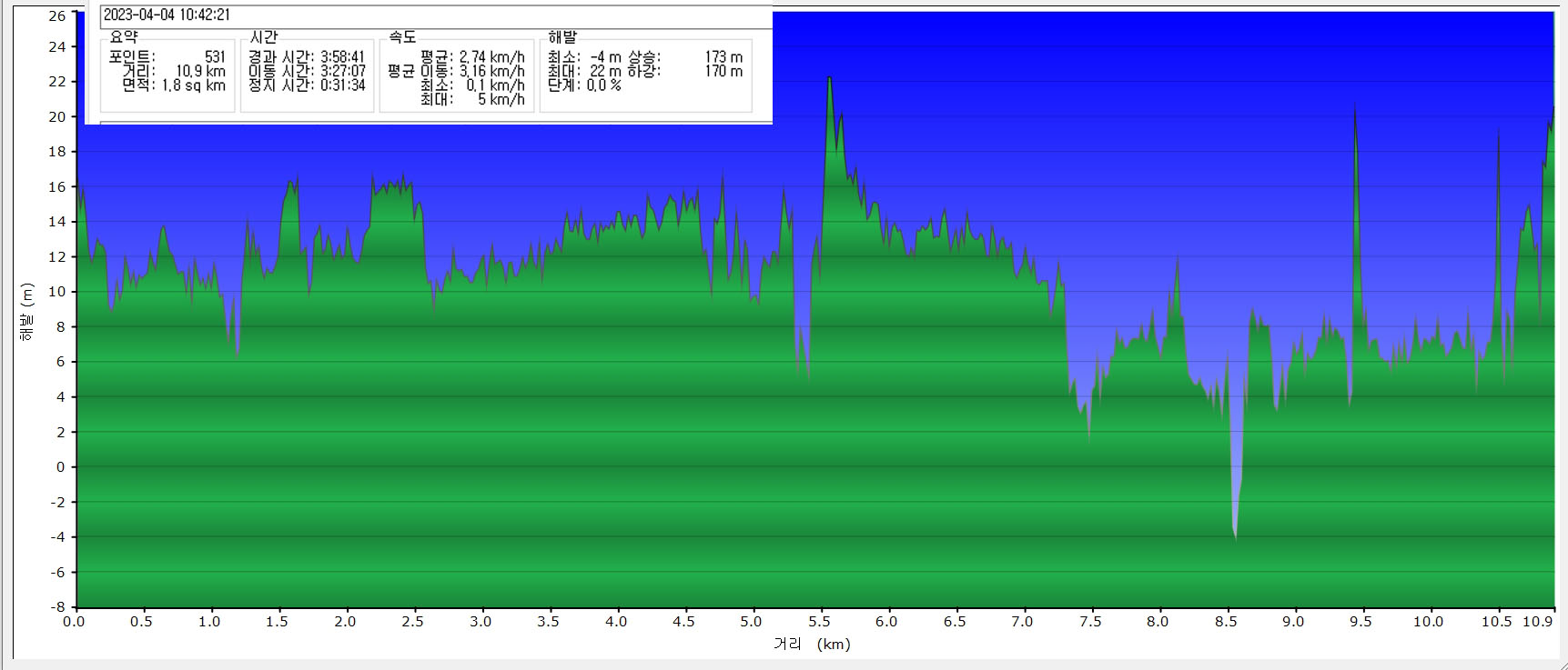 | 이동시간 | 3:27:07 | 3.16 km/h | ||