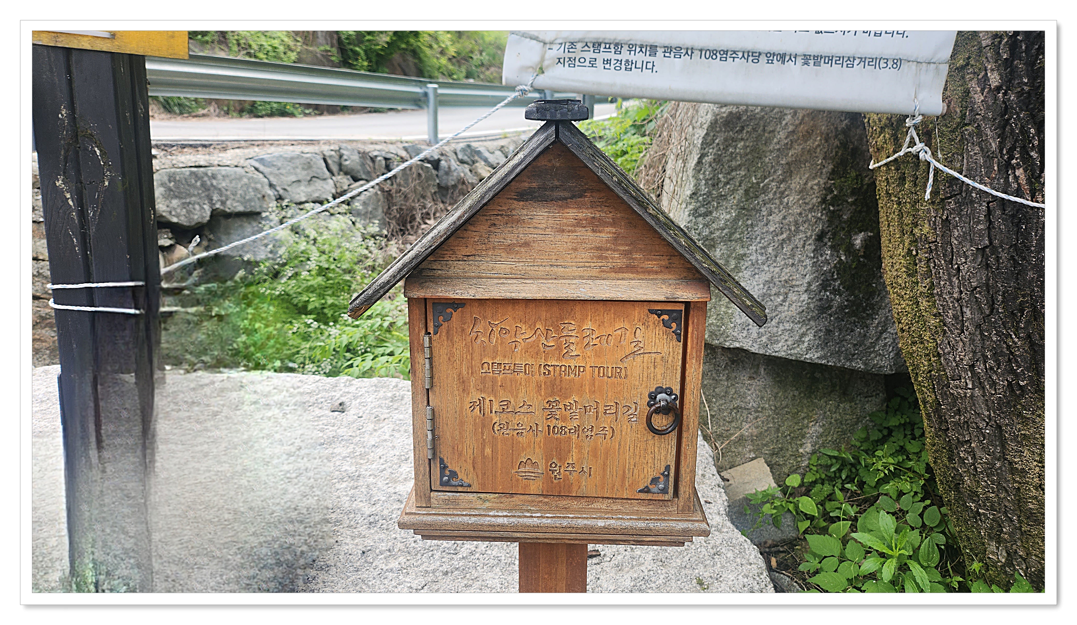 운곡원천석묘역 입구 둘레길 스탬프함