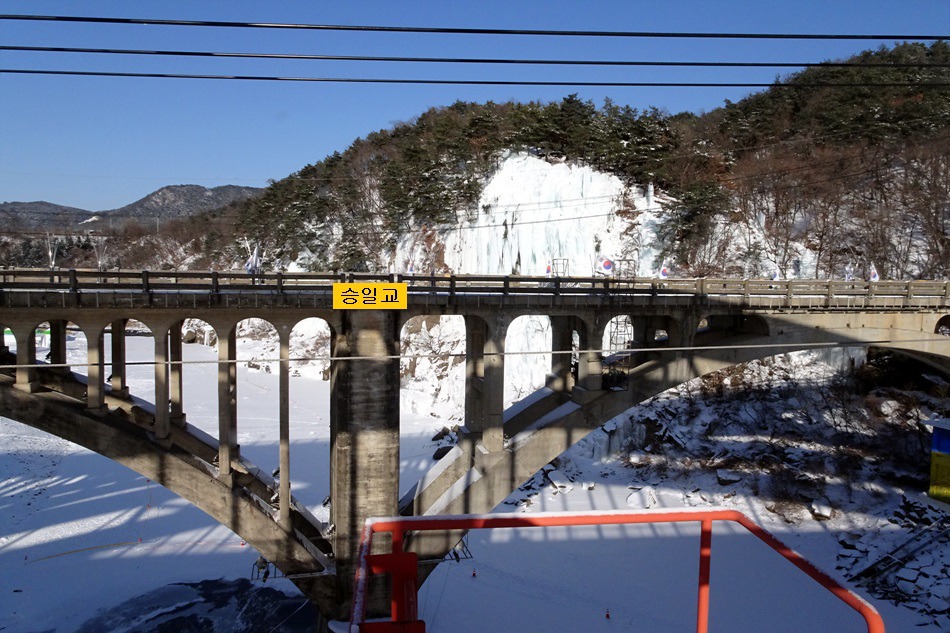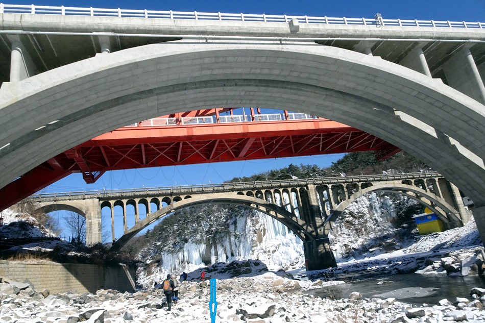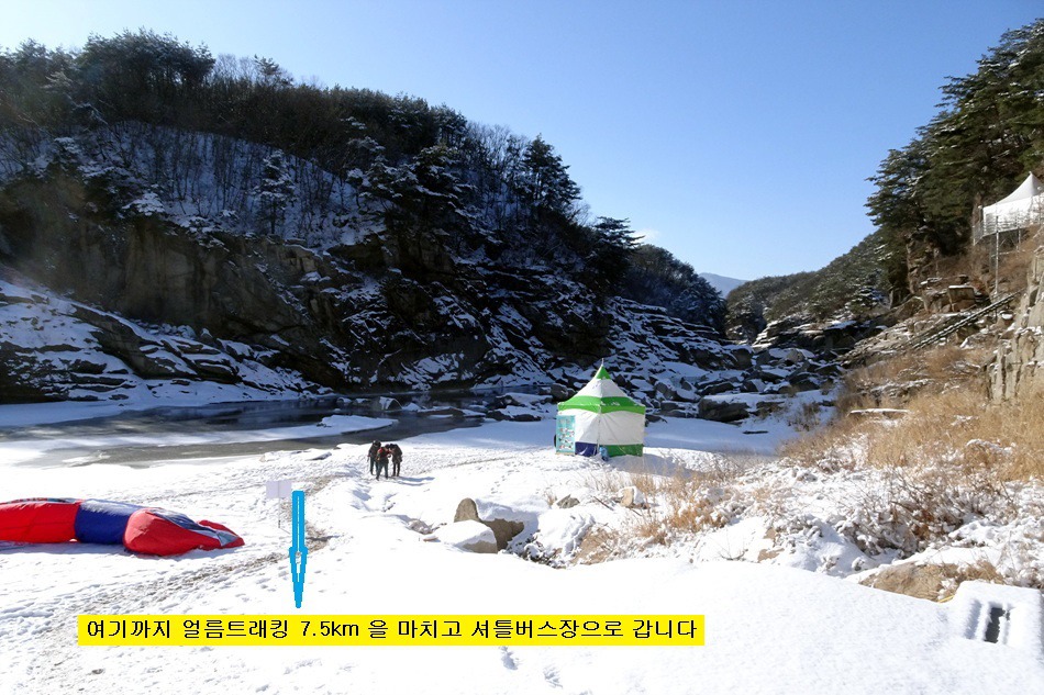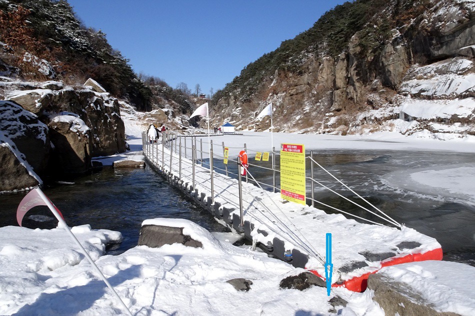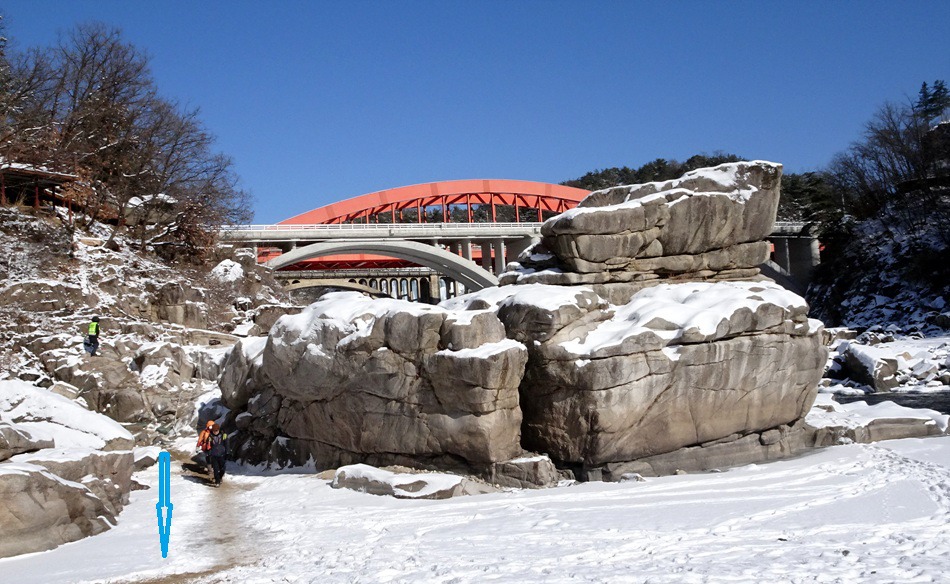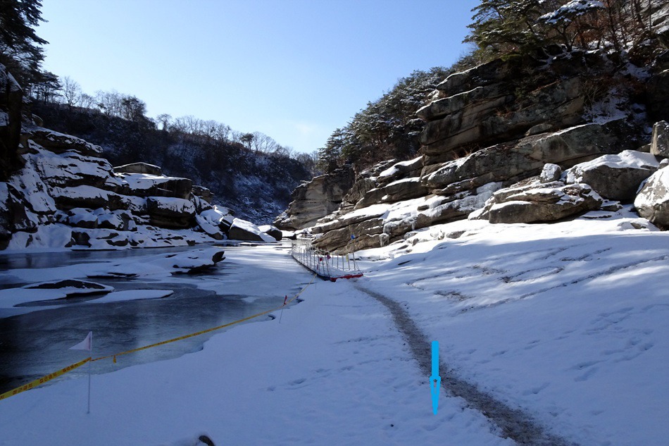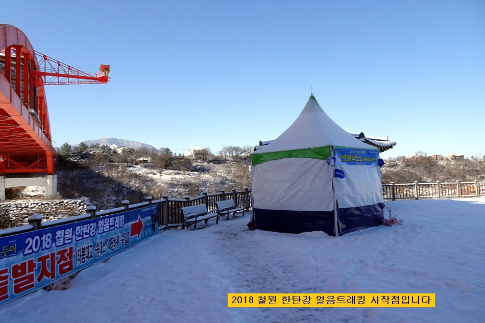 ♣철원군 한탄강(얼음트래킹)답사걷기[2018/01/23/]위 치: 강원도 철원군 동송읍 촬영일시:2018년01월23일(화요일), 날씨기상:맑음(영하14도 체감17도) 걷기코스:태봉대교~송대소~마당바위~승일교~고석암~순담계곡~승일공원~고석정P정류소 총소요시간:04시간20분(사진촬영 휴식()시간포함)(이동거리 11.34km)[함께한사람~(뚜벅이 뚜심이 대중교통이용)] 시작=11시16분=태봉대교에서*****마침=15시37분=고석정P정류소까지 [이시간은 답사 사진촬영과 휴식시간 포함이오니 개인의 걷기 실력으로 달라질수 있습니다.]제 1393회▶원군 한탄강(얼음트래킹)이란???▶ ▶원군 한탄강(얼음트래킹)에 대하여◀ ♣개 요♣ 철원군 한탄강(얼음트래킹)은 한탄강을 걷는 축제로서 2018년은 1월20일부터~28일까지 9일간 철원군에서 주최한행사로 규모가 크고 매년열리는 겨울철에 얼음위을 걸을수 있어 이번에 추운날이지만 답사하고 고석정P정류소에서 오늘에 걷기을 마칩니다..