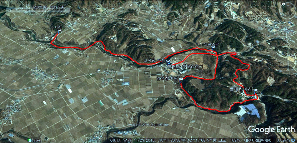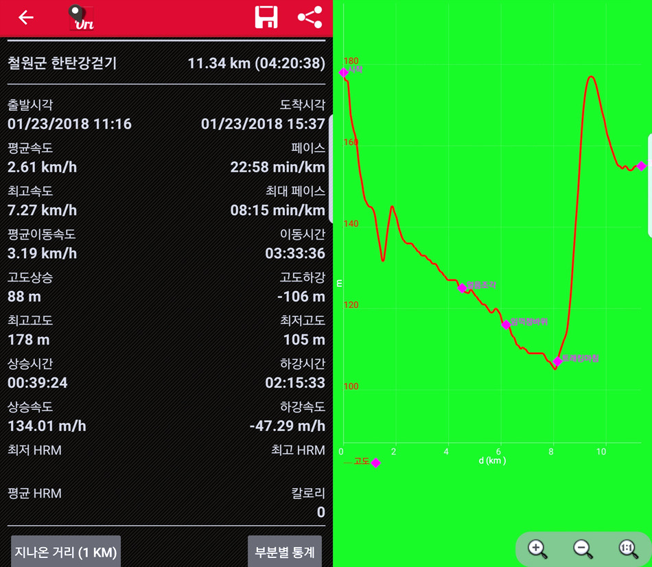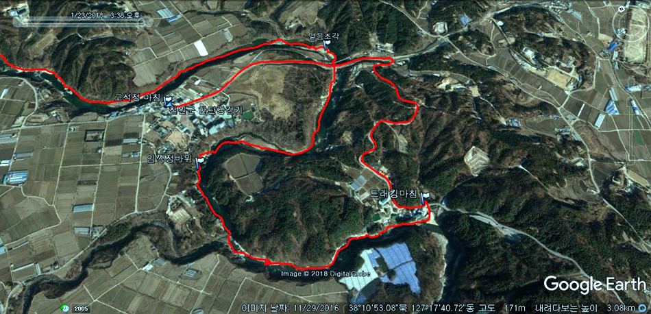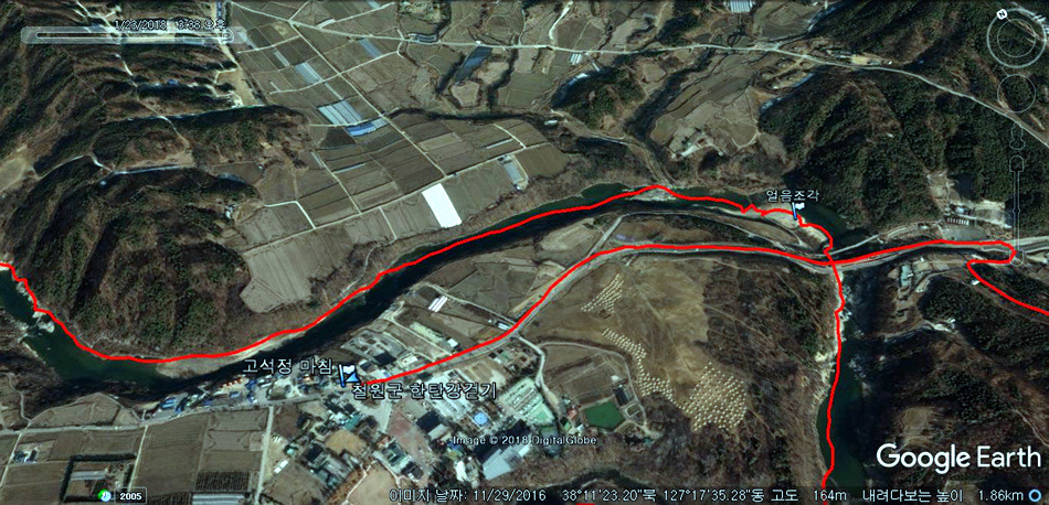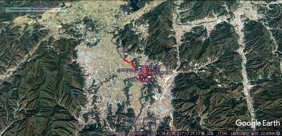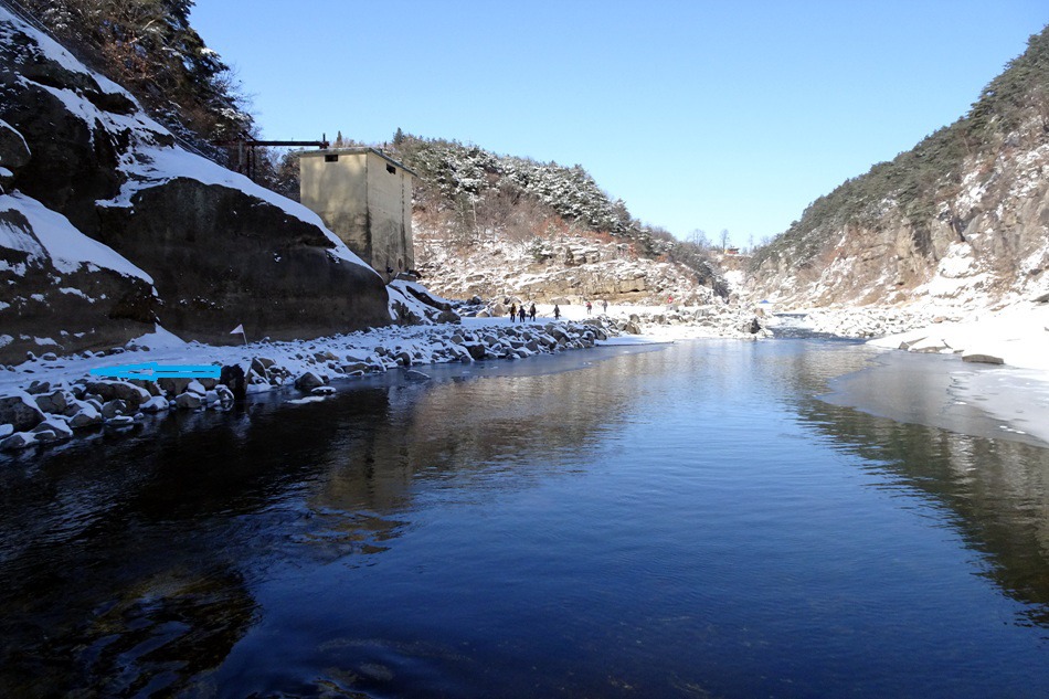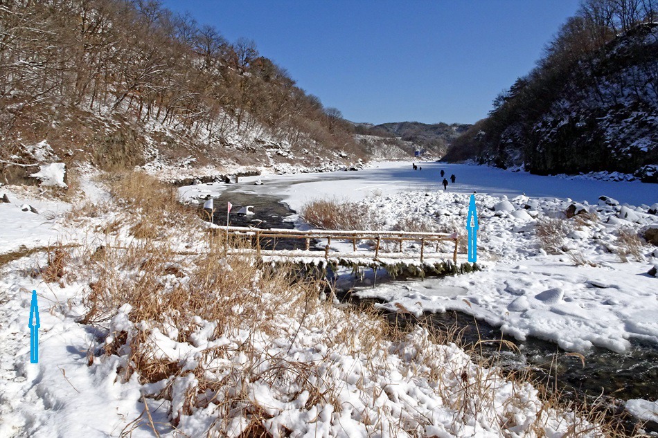 ♣철원군 한탄강(얼음트래킹)답사걷기[2018/01/23/]위 치: 강원도 철원군 동송읍 촬영일시:2018년01월23일(화요일), 날씨기상:맑음(영하14도 체감17도) 걷기코스:태봉대교~송대소~마당바위~승일교~고석암~순담계곡~승일공원~고석정P정류소 총소요시간:04시간20분(사진촬영 휴식()시간포함)(이동거리 11.34km)[함께한사람~(뚜벅이 뚜심이 대중교통이용)] 시작=11시16분=태봉대교에서*****마침=15시37분=고석정P정류소까지 [이시간은 답사 사진촬영과 휴식시간 포함이오니 개인의 걷기 실력으로 달라질수 있습니다.]제 1393회▶원군 한탄강(얼음트래킹)이란???▶ ▶원군 한탄강(얼음트래킹)에 대하여◀ ♣개 요♣ 철원군 한탄강(얼음트래킹)은 한탄강을 걷는 축제로서 2018년은 1월20일부터~28일까지 9일간 철원군에서 주최한행사로 규모가 크고 매년열리는 겨울철에 얼음위을 걸을수 있어 이번에 추운날이지만 답사하고 고석정P정류소에서 오늘에 걷기을 마칩니다..