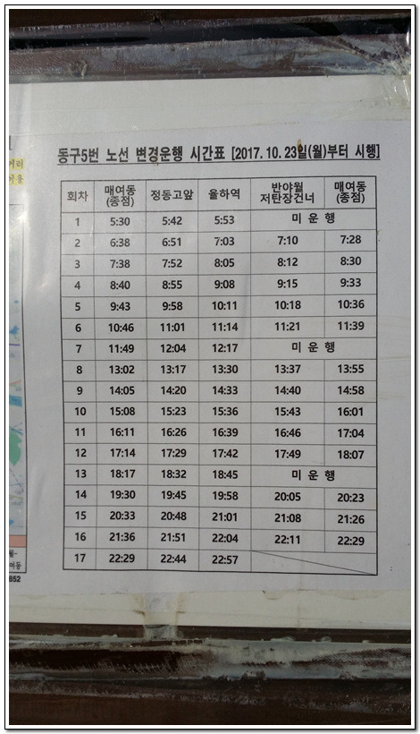 7. 교통참고 : 지하철 1호선 안심역에서 시작. 나올때는 매여동에서 동구5번이용 (아래 시간참조).