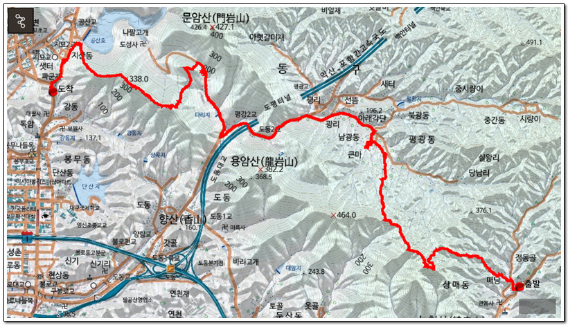 3. 산행코스 : 매여동~요령봉~평광마을입구~다리지~구절송~공산댐~파군재삼거리
