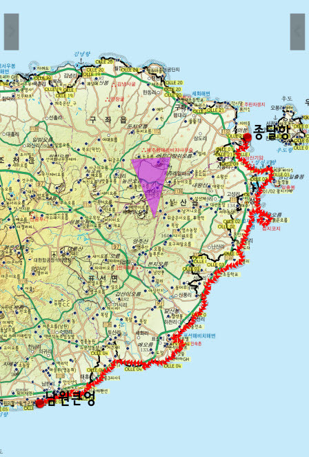 남원 큰엉에 도착하기 전에 보는 우리나라 지도