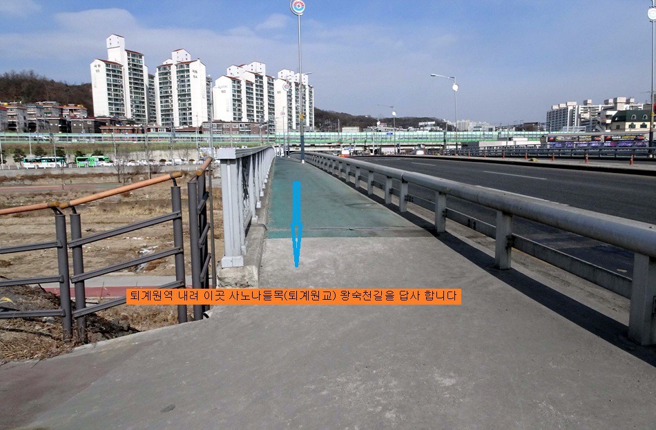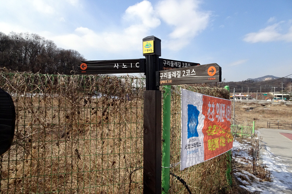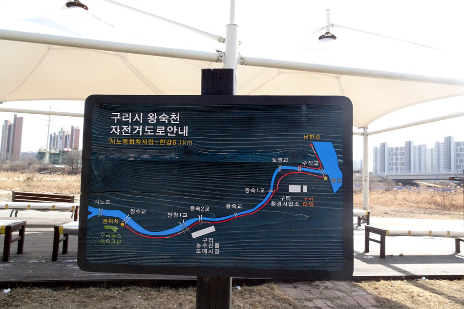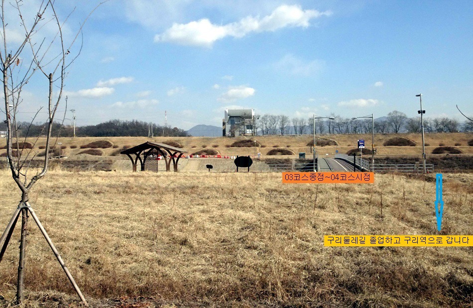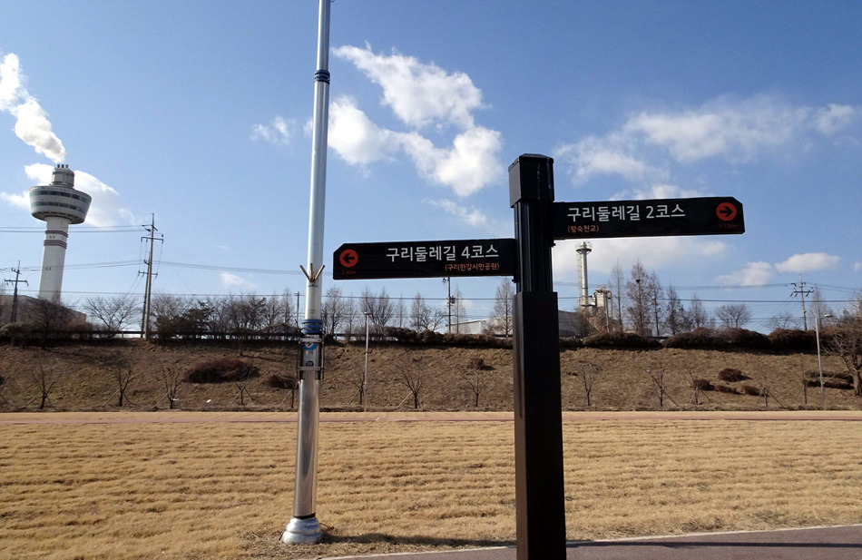 ♣구리시 둘레길03코스(왕숙천)답사걷기[2018/02/12/]위 치: 경기도 구리시 남양주시 촬영일시:2018년02월12일(월요일), 날씨기상:흐림(영하0.6도 체감0.9도 미세먼지) 걷기코스:퇴계원역~사노나들목~구리왕숙천체육공원~동창보~구리농수산물도매시장~구리자원회수시설(구리타워)~구리역 총소요시간:04시간21분(사진촬영 휴식(식사44분)시간포함)(이동거리 13.29km)[함께한사람~(뚜벅이 뚜심이 대중교통이용)] 시작=11시41분=퇴계원역에서*****마침=14시05분=구리역까지 [이시간은 답사 사진촬영과 휴식시간 포함이오니 개인의 걷기 실력으로 달라질수 있습니다.]제 1400회▶구리시 둘레길03코스(왕숙천길)이란???▶ ▶구리시 둘레길04코스(왕숙천길)에 대하여◀ ♣개 요♣ 그동안 이용하던 구리시 둘레길이 17년 새롭게정비하여 구리시 경계을 걷은걷는 04코스로 열였다는 소식에 접하고 18년01월28일 한강나루길에 우연히 04코스(한강코모스길)을 걷고 끝지점 대장간마을이 종점과 01코스시작점이어서 이기회에 구리둘레길을 답 사합니다 오늘은03코스(왕숙천길)을 찾아 퇴계원역에서 내려 구리둘레길03코스을 시작하여 사노나들목(퇴계원교)~왕숙천공원~ 동창보~농수산물도매시장~생태습지~구리자원회시설~마음교에서 전구간둘레길완주을 마치고 구리역으로 가려고 약4.5km 걸어 시내을 통하여 구리역에서 오늘에 걷기을 마무리 합니다.