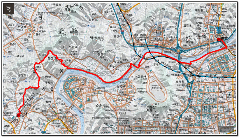 3. 산행코스 : 팔달역~북부하수처리장~서재문화체육센타~이강서원~마천산살림욕장~마천산정상~문양역