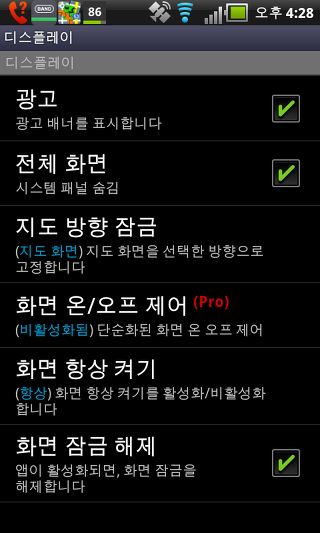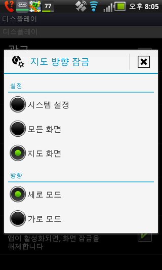 지도 화면 - 전용 맵 화면에 적용. 방향 잠금