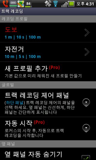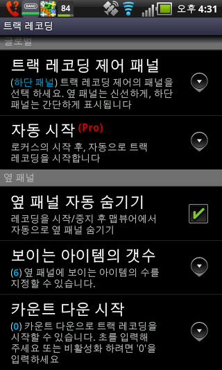 트랙 레코딩 - GPS 트랙 레코딩이 일시 중지 될 때 응용 프로그램이 최소화 된 경우에도 GPS를 켜짐으로 유지 할 수 있습니다.