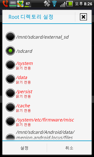 Root 디렉토리 설정- 로커스는 루트 디렉토리를 다른 곳으로 선택할 수 있습니다. 이에 대한 자세한 설명은 블로그 .