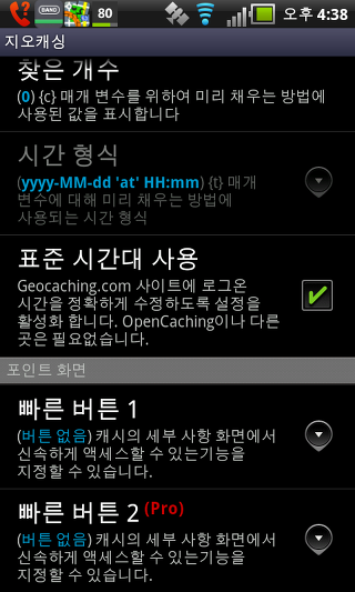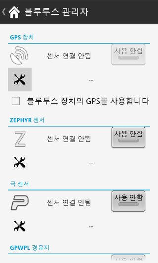 블루투스 GPS - 내장 GPS 대신 블루투스 GPS를 사용하는 옵션을 선택합니다. 블루투스 GPS를 사용하는 주요 장점은 전화 배터리 수명이 연장됩니다.