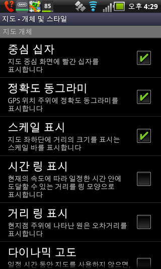 중심 십자 - 메인 지도 화면에 빨간 중심 십자를 표시합니다.