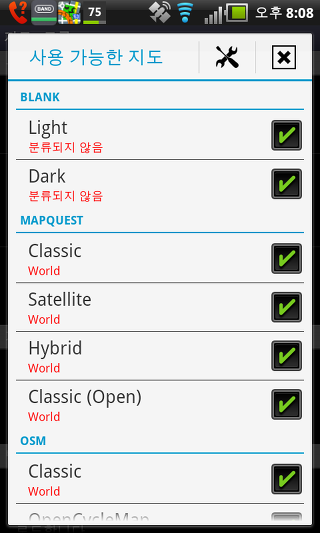 사용 가능한 지도 -지도 관리자 화면에서 온라인 지도 보이기/숨기기