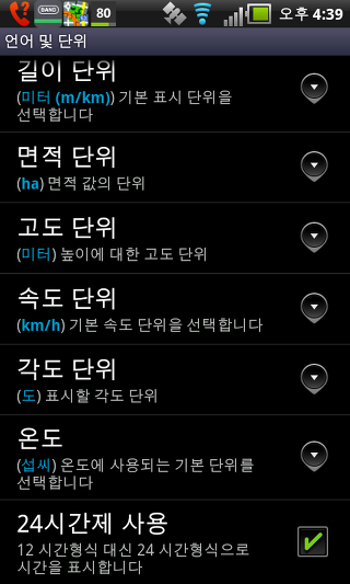 고도 단위 - 해발 높이 단위의 선택.