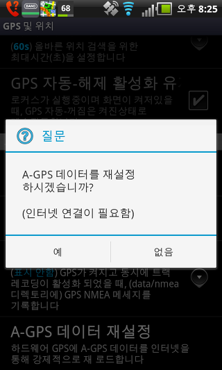 A-GPS 데이터 재설정 - GPS 위치의 빠른 결정을 위해 보조 GPS 데이터를 재설정 하는 기능. 이 기능을 사용하려면 인터넷에 연결해야 합니다. 이 기능은 스마트폰에 적합하고 피처폰에 적합하지 않을 수 있습니다.