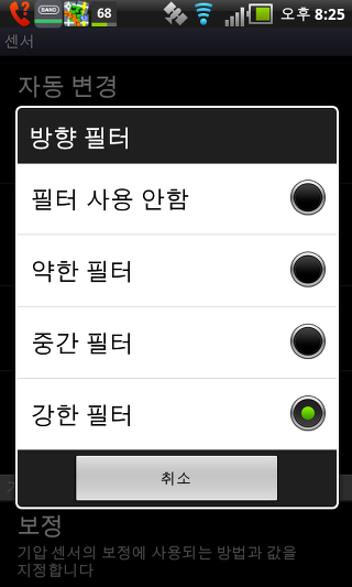 방향 필터 - 기능 조절 감도 나침반