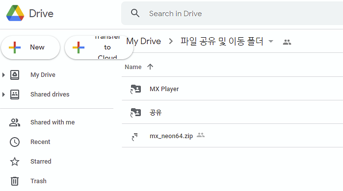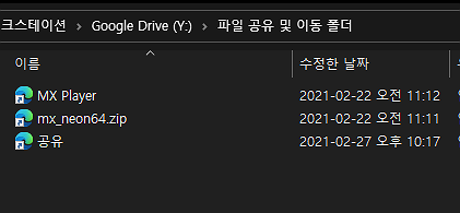 위 사진은 구글 드라이브 웹사이트에서 바로가기를 본 모습인데요. 보시면 폴더와 zip파일로 인식합니다.