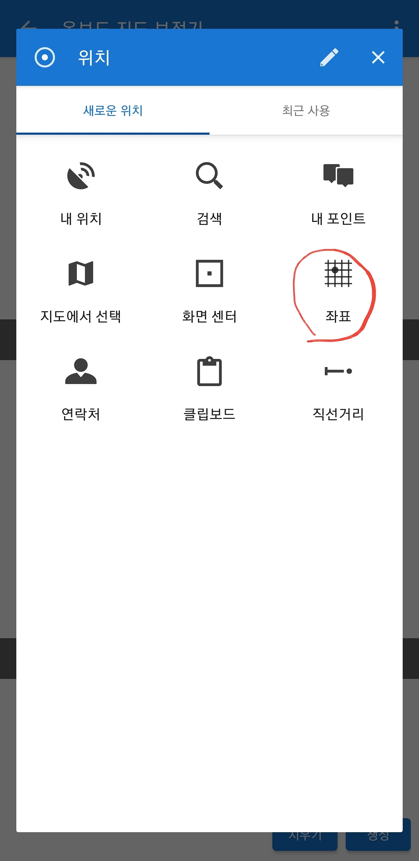여기선 지도에 좌표가 있어서 지도 좌표 연필 마크를 선택합니다