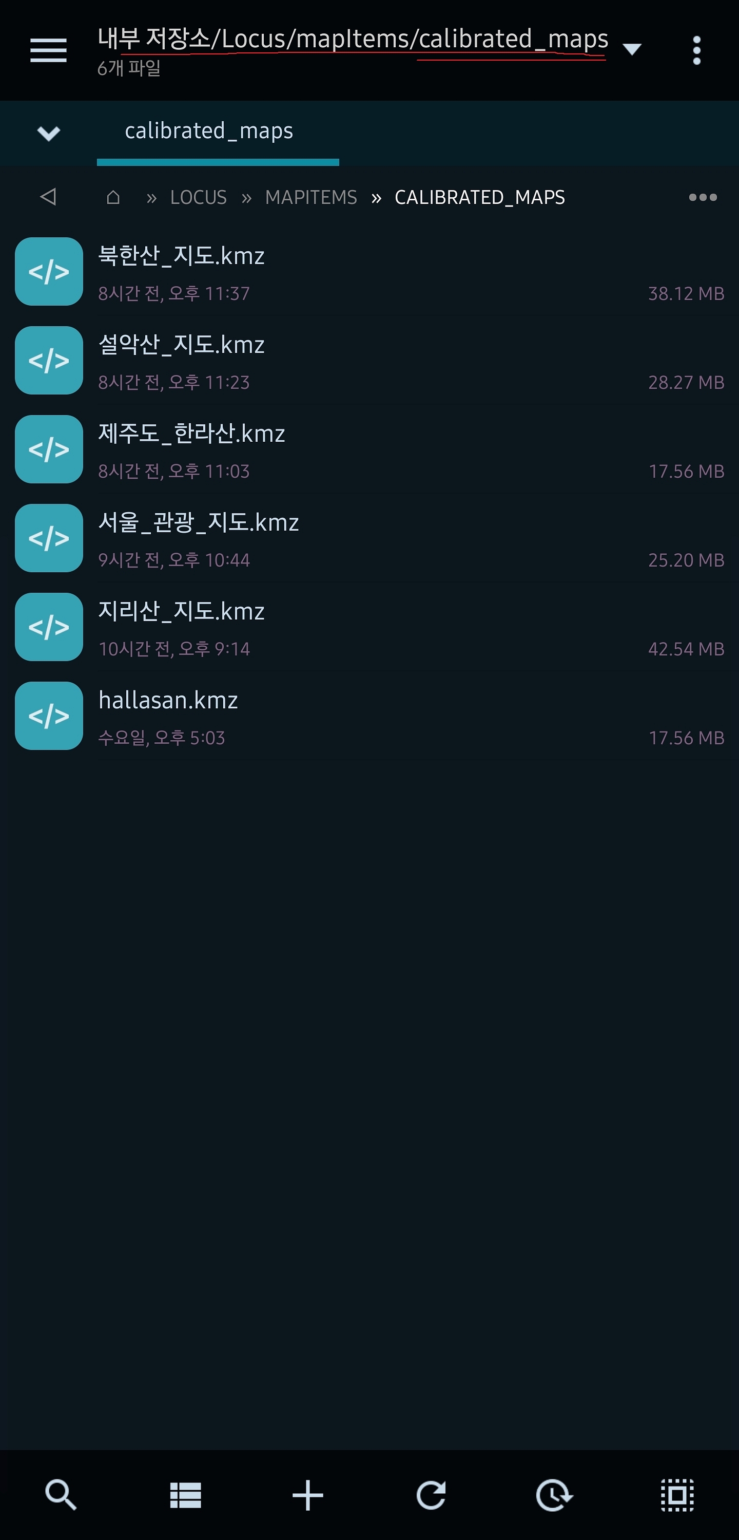 지금 현재 스마트폰 다운로드 폴더에서 파일을 불러올 수 없고(버그 다음 버전에서 수정된다고함) 다른 폴더나 클라우드 드라이브에선 불러오기 가능하기 때문에 위에 제가 올린 샘플 지도는 다운로드 폴더를 피해서 다른 곳에 저장 후 불러오기 하시면 됩니다