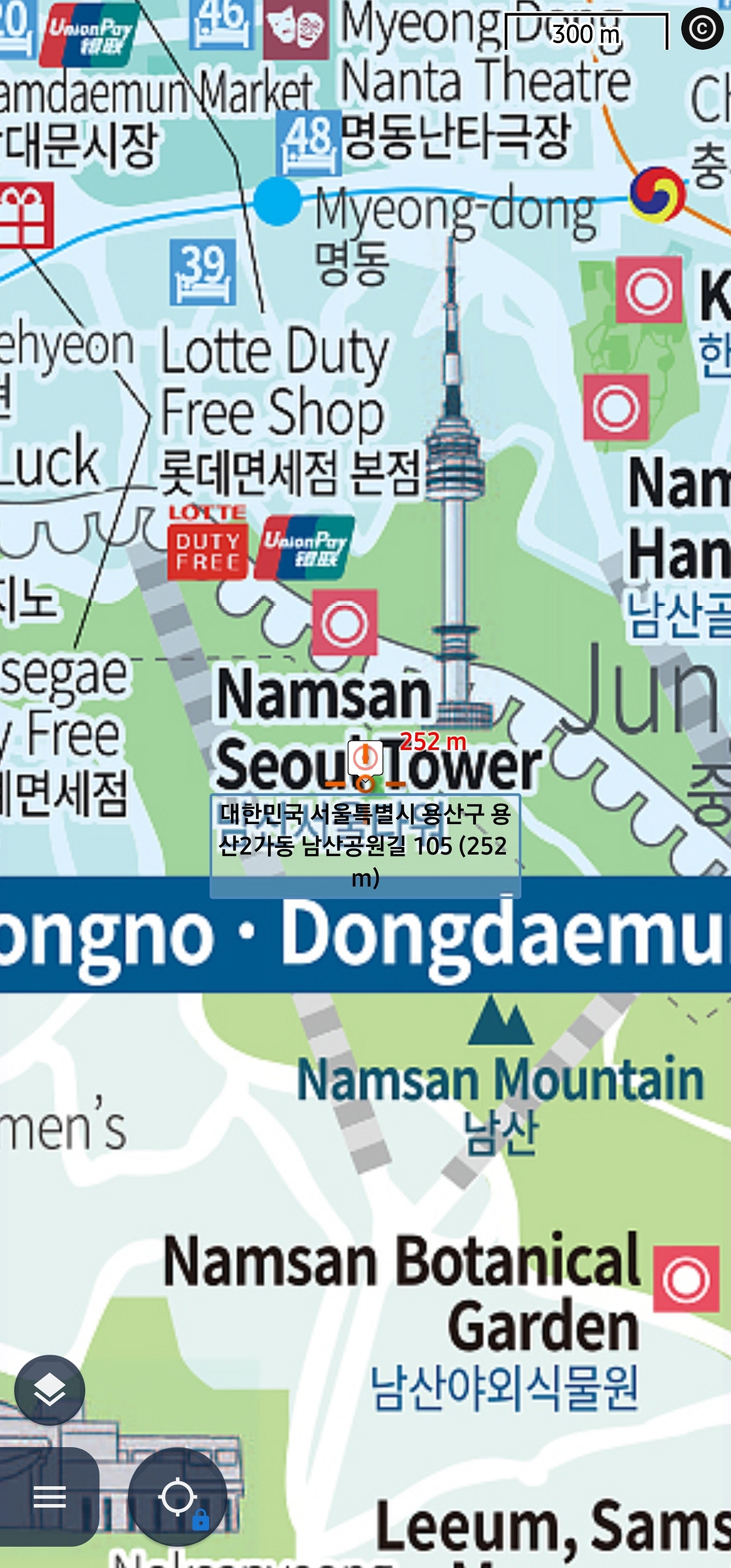 그리고 위, 경도를 적어 두든가 아니면 외웠으면 다행인데요 깜박했다면 십자 마크를 그대로 둔 채 오른쪽 축소 버튼을 눌러 축소해서 위, 경도를 알아냅니다 그런 다음 왼쪽 동그라미를 눌러 체크하세요