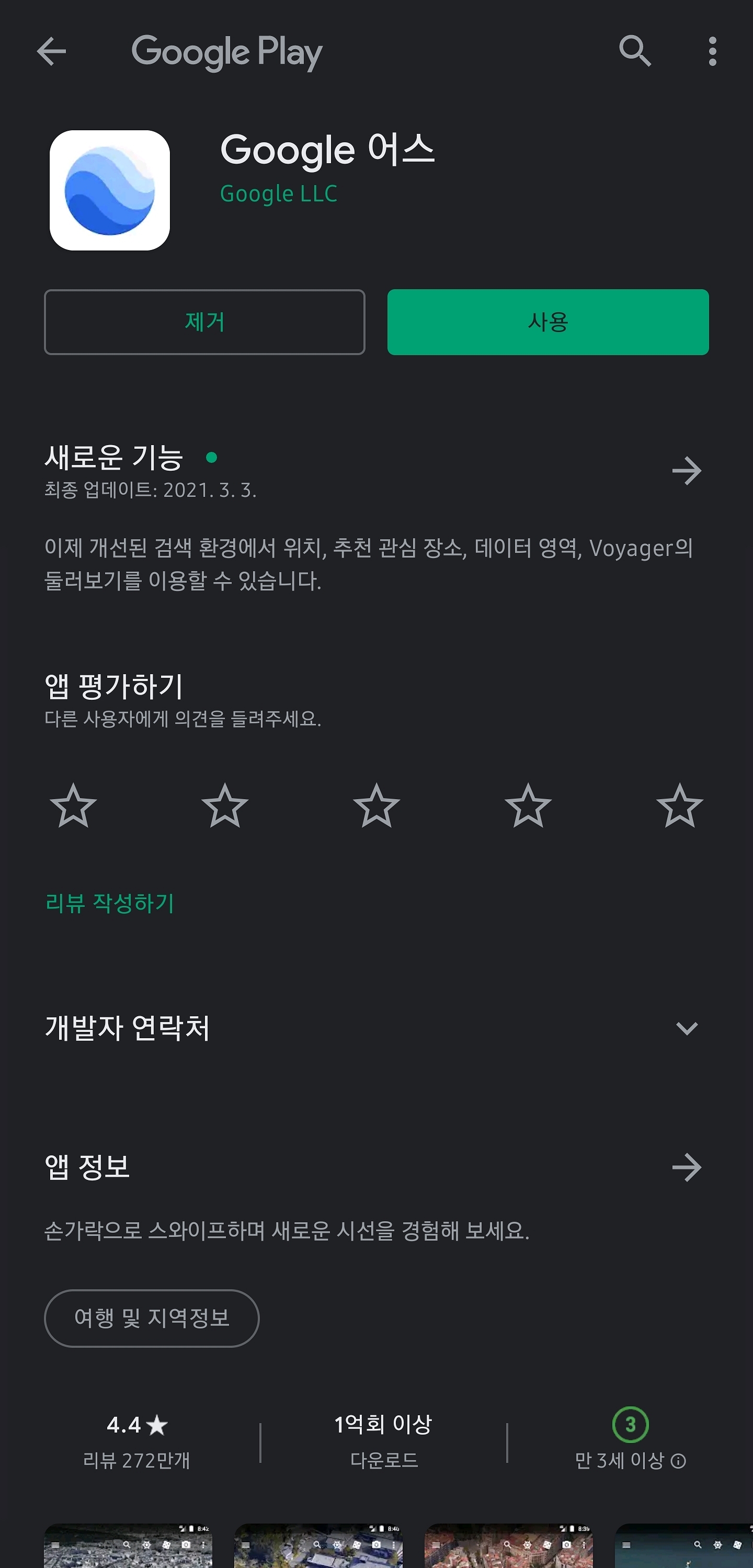 그러면 구글 플레이 스토어로 들어가서 비활성화 된 구글 어스를 깨울 수 있는 화면이 나옵니다