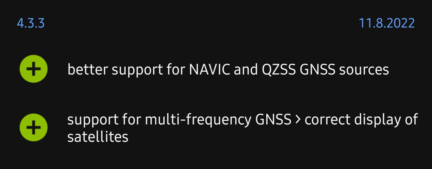 NAVIC 하고 QZSS 위성에 대한 더 나은 지원과 듀얼 밴드 GNSS에 대한 지원 및 올바른 표기입니다