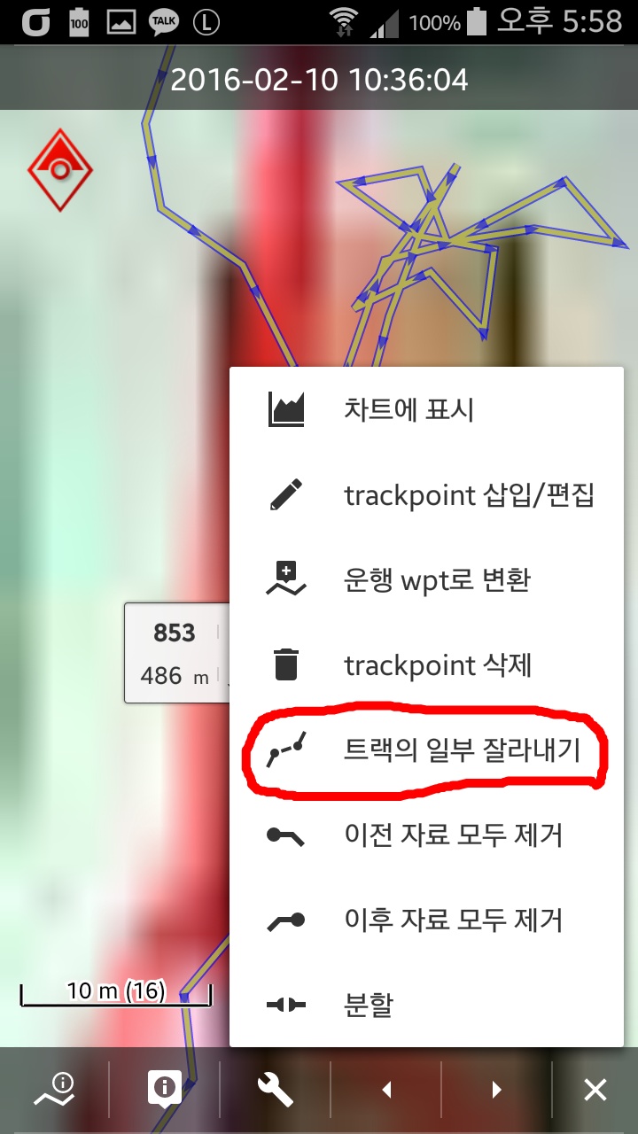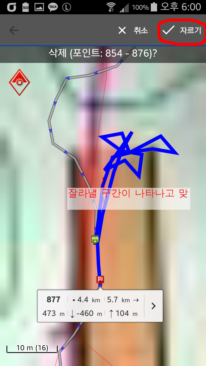 1. 트랙도중 알바구간이나 식사시간에 트랙이 기록된것을 삭제하는 방법.