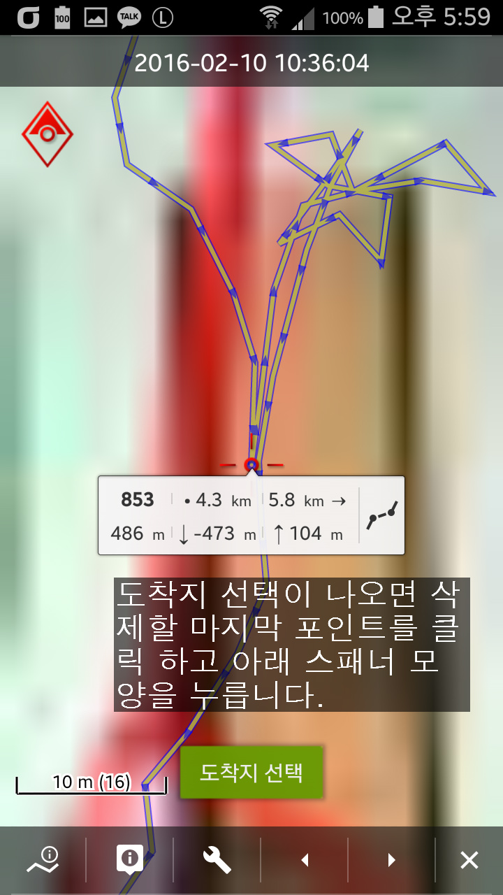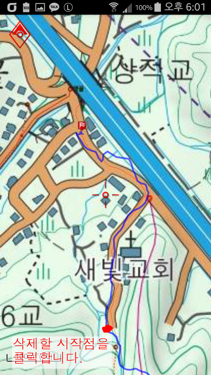 사진 처럼 원치않는 트랙이 생긴 경우 삭제를 하기 위해서는 트랙위 삭제를 시작할 점을 손가락으로 클릭합니다.