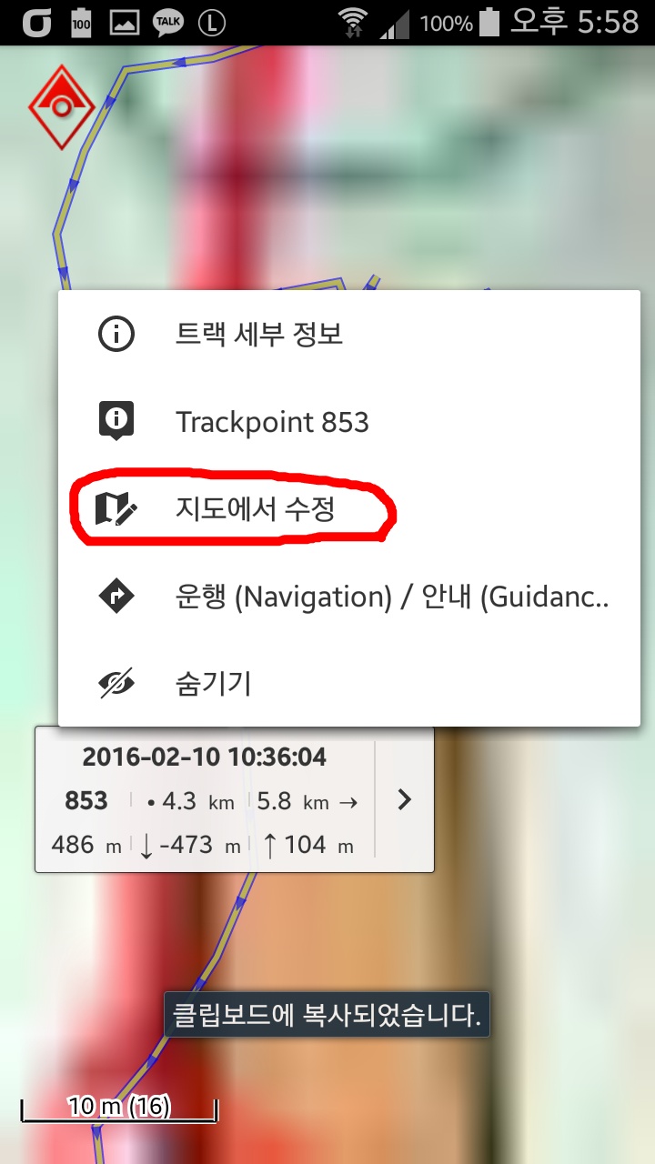 제가 사용하는 세가지 앱(로커스,오록스,산길샘)에서 지도오버레이 다음으로 로커스를 잘써먹는게 있다면 바로 이 트랙 수정기능 입니다.