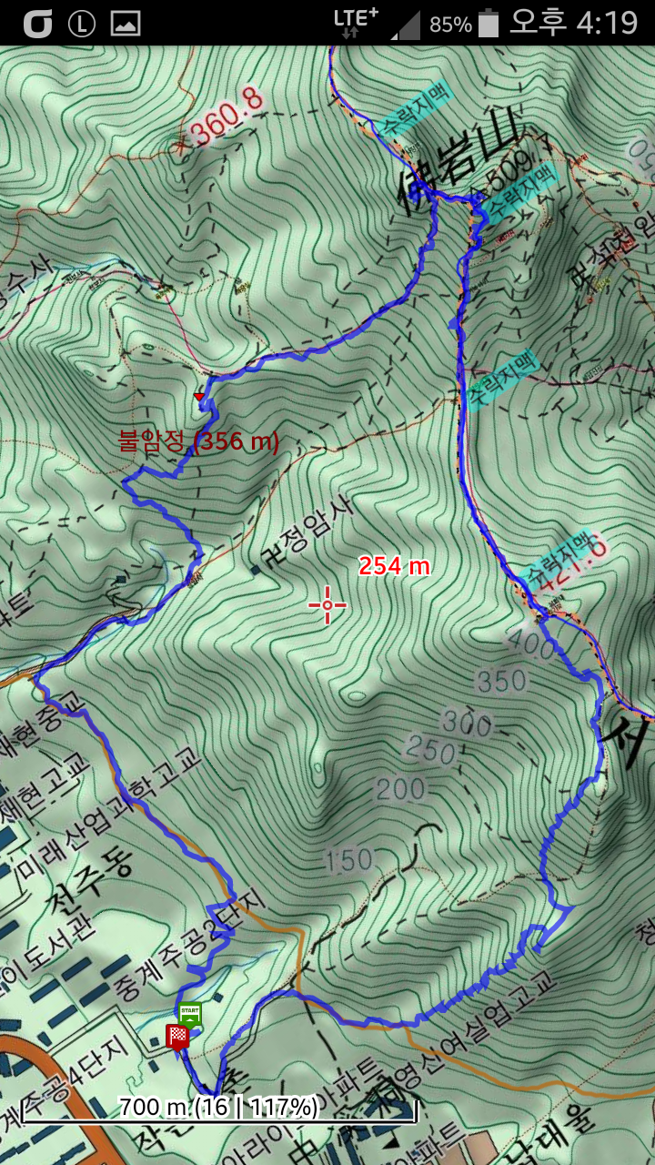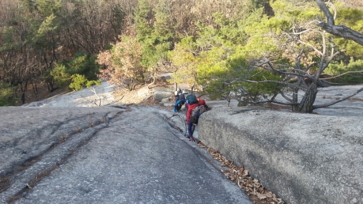 올라가는 슬랩코스는 장비없이 등반이 가능하지만 일반등산로에 넣기는 부담되고 내려오는 코스는 일반등산로와 둘레길 그리고 마지막 구간은 자락길(데크)이라 신규등산로로봐도 무방하다.