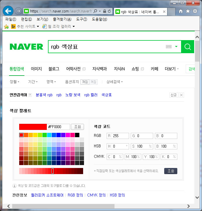 색상은 네이버에 rgb 색상표를 검색하면 이와같은 표가 나옵니다.