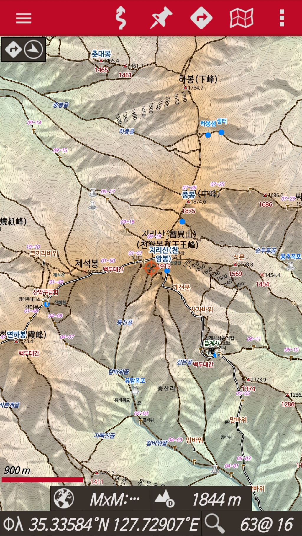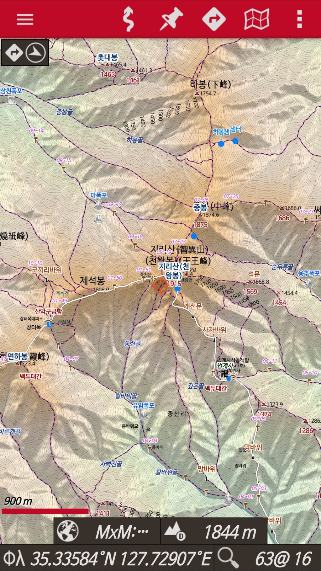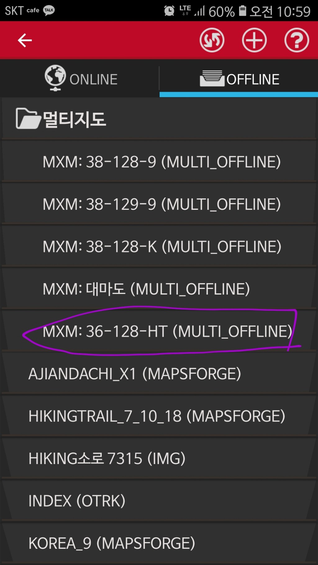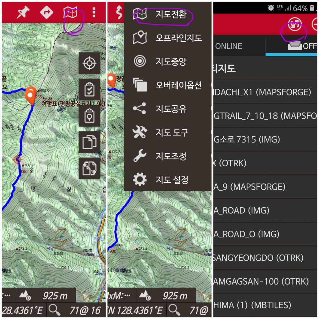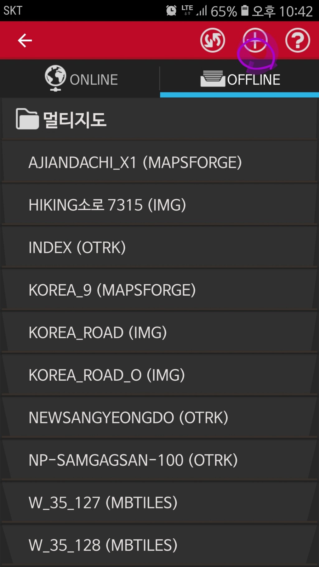 갑자기 등산로지도만 화면에 나온다면 이것 때문입니다.