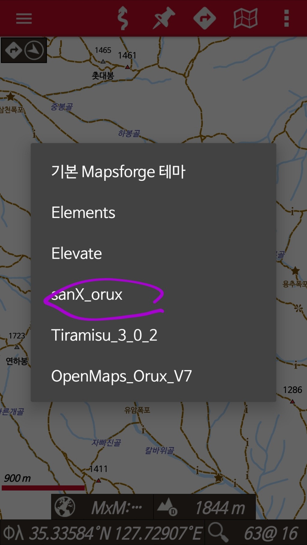 테마파일은 압축을 풀어서 sanX_orux폴더를 통째로 폰에 oruxmaps/mapstyles 폴더에 넣으시면 됩니다.