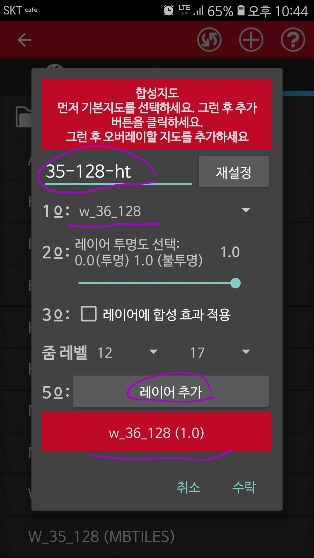 다음화면이 나오면 합성지도 이름을 먼저 넣습니다. 본인이 알아볼수 있도록 임의로 적습니다. 샘플로 w_36_128 지도를 작업할 것이라서 이름을 알아볼수 있도록 넣었읍니다.