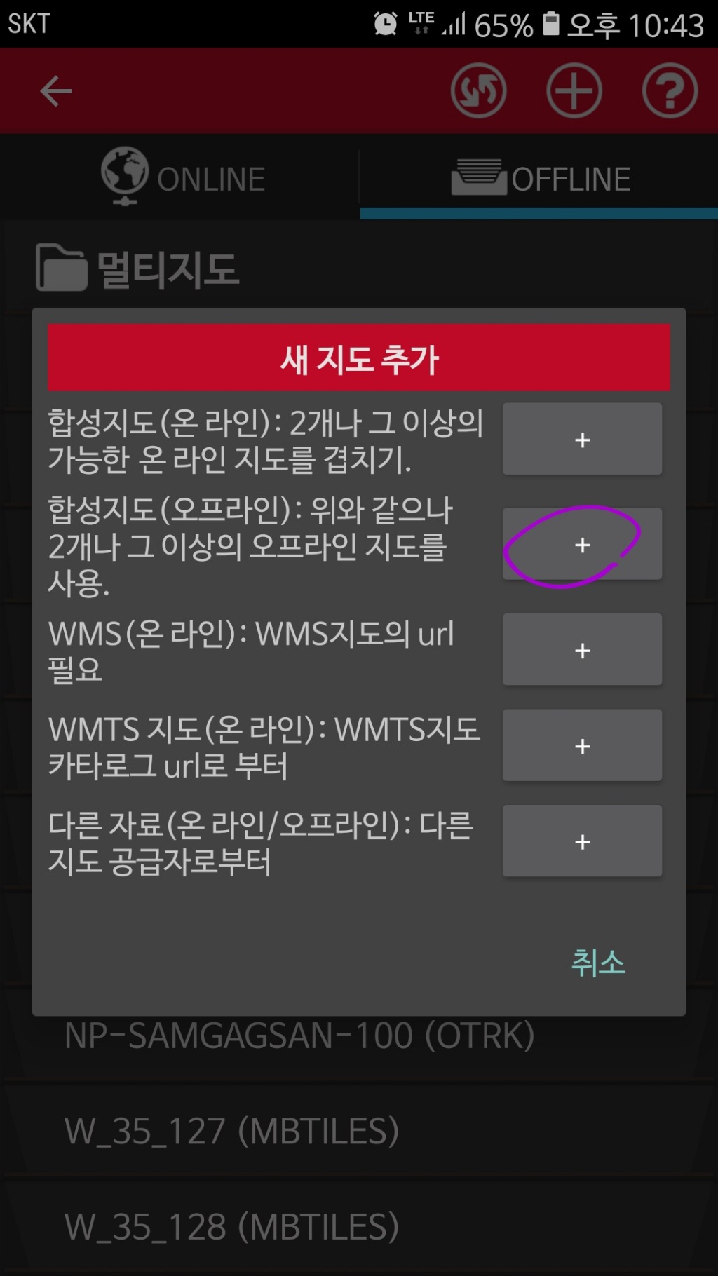 이번엔 지도-지도전환-누르고 상단에 +표시를 누릅니다.