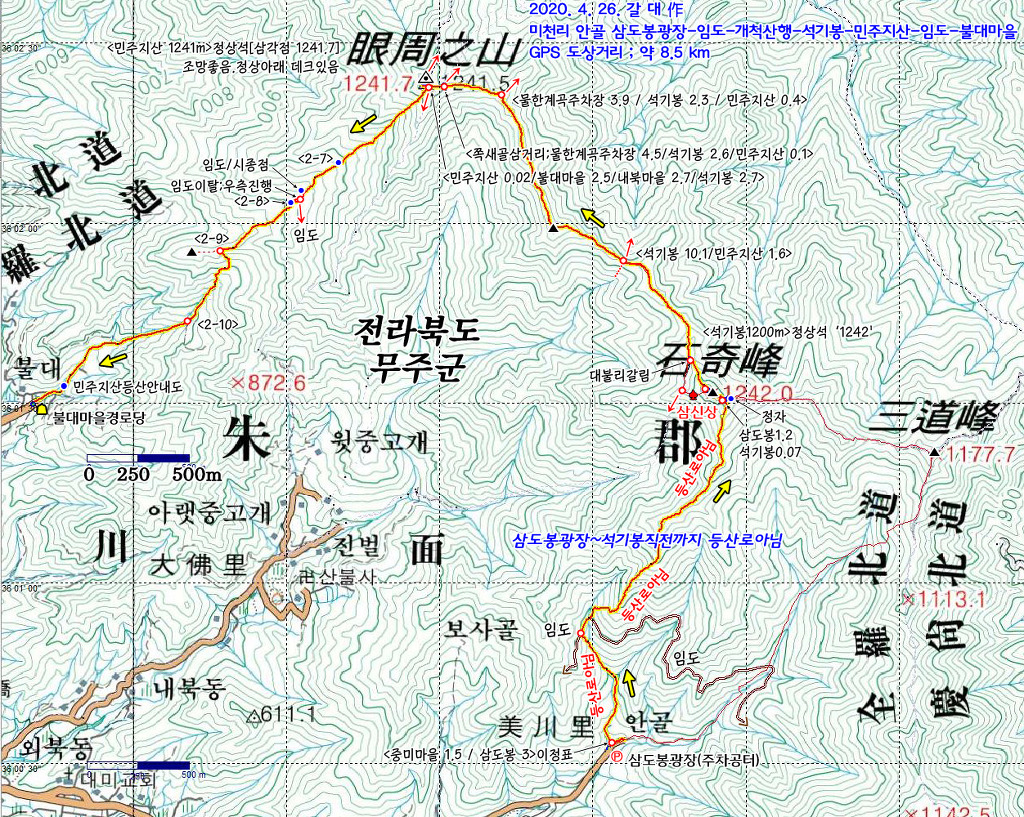 (전북 무주) 석기봉-민주지산-불대마을 (20.04.26)