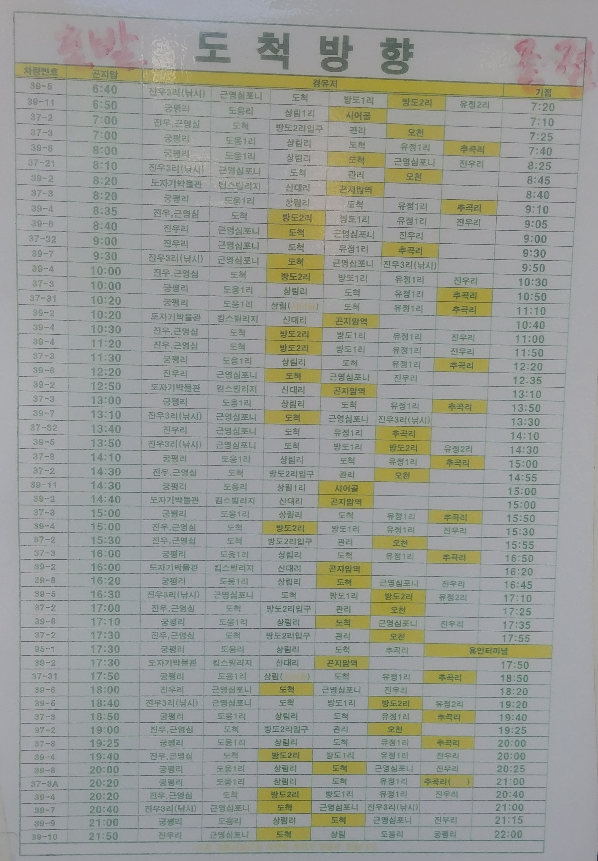 - 곤지암터미널 시간표