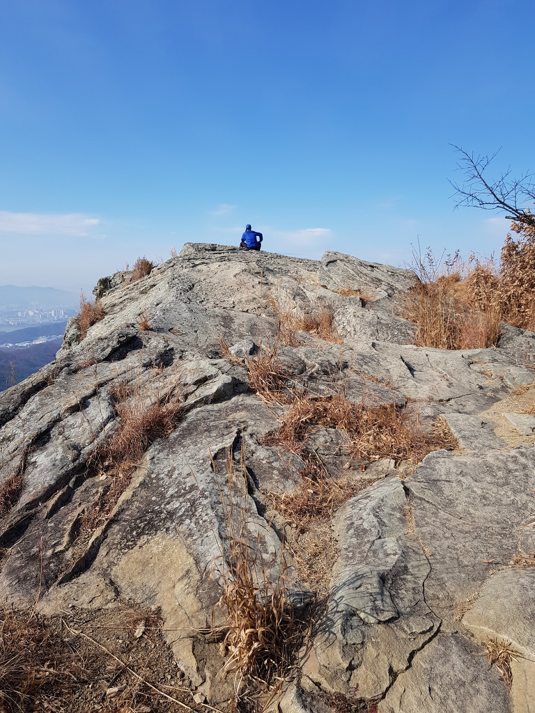 통신바위. 봉은 아니고, 저길 가려면 로프를 잡고 잠시 내려 가야 하는 데,