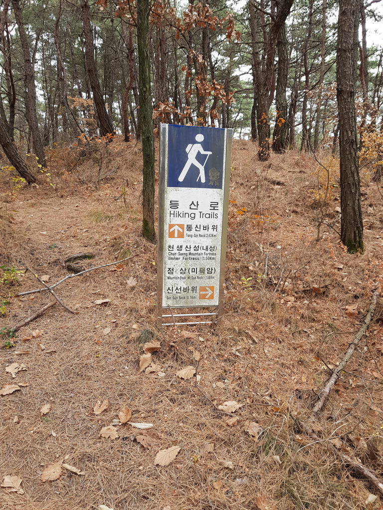 구평터널 부근에서는 도로 공사가 한창으로, 기존 트랙이 없어져서 좀 헤매다가 산성지 옆으로 다시 정상 등로로 올라 천생산에 도착합니다.