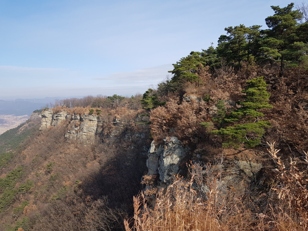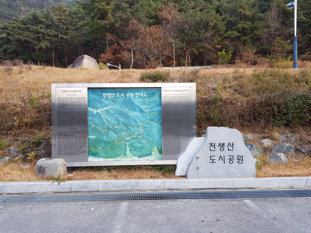 구미시 구평동의 용수소류지 옆, 천생산산림욕장 주차장에 주차하고 천룡사 조금 못 미쳐 들머리로 거북바위-장수봉을 지나 검성지 옆으로 해서 천생산으로 오릅니다.