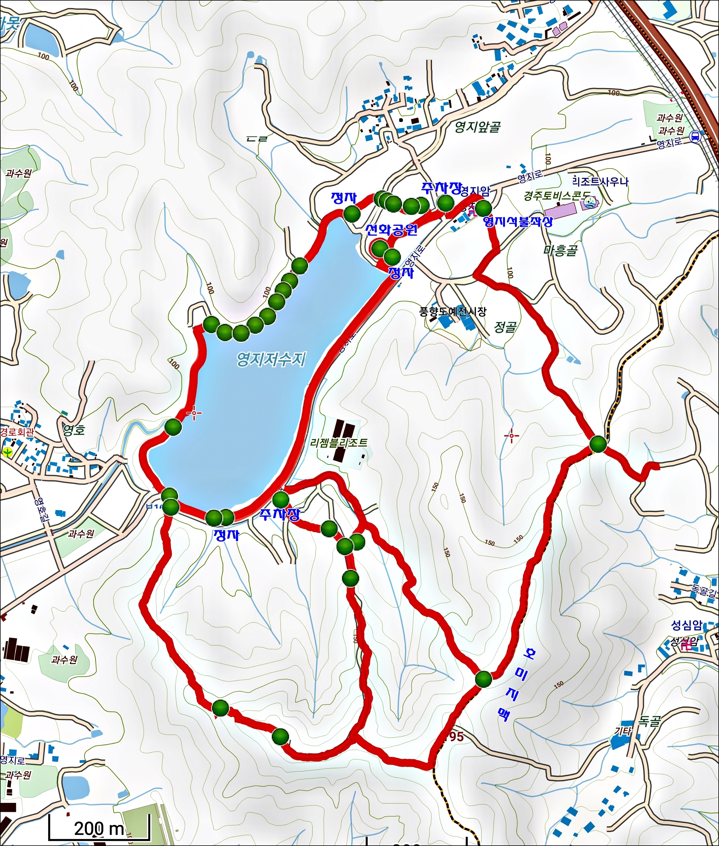 영지는 둘레 2km정도의 자그마한 저수지이지요.