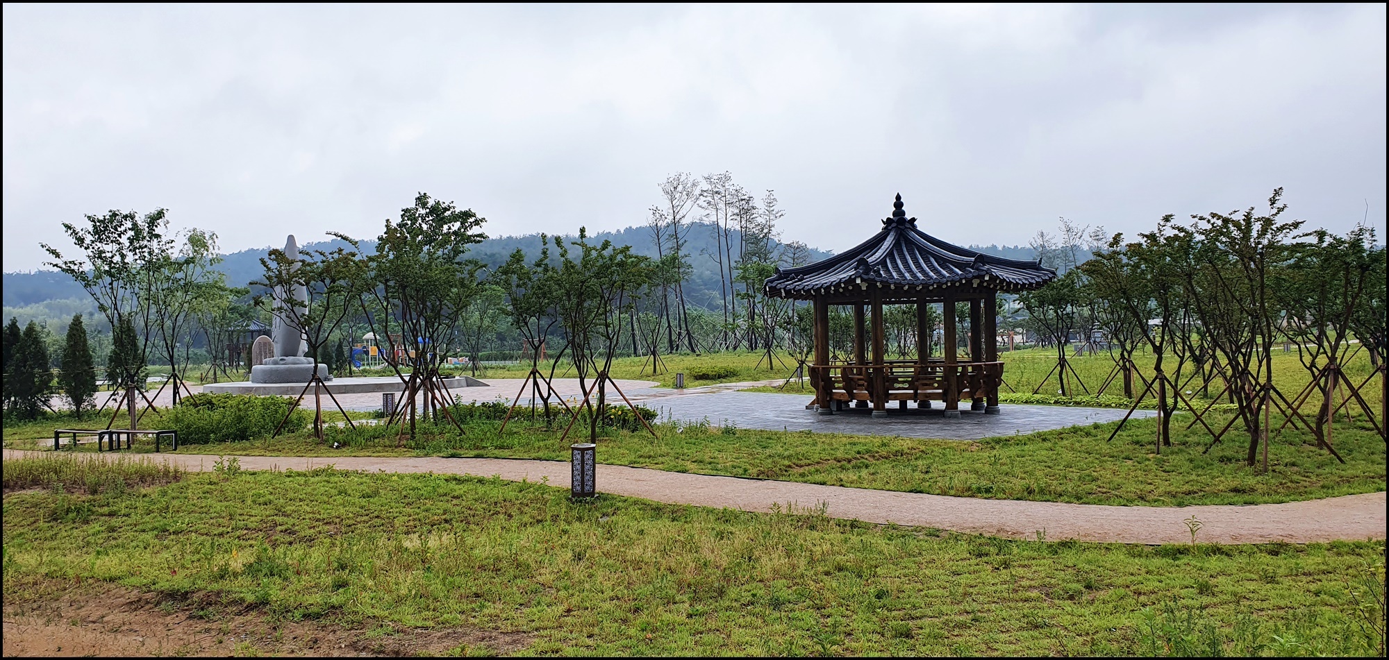 아직 공원 조성한지 얼마 안되어서 수목이 어울리지 않습니다.