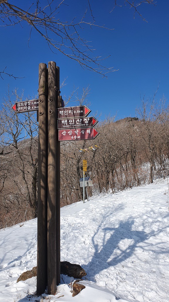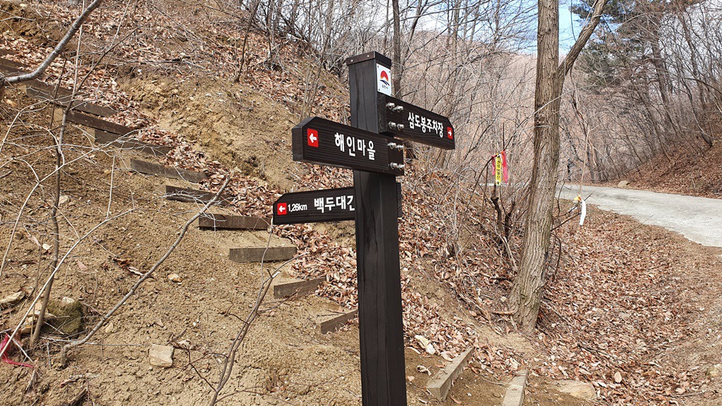 3. 산행코스 : 해인리마을~삼도봉주차장~백두대간등산로(신루트)~삼도봉정상~삼도봉주차장