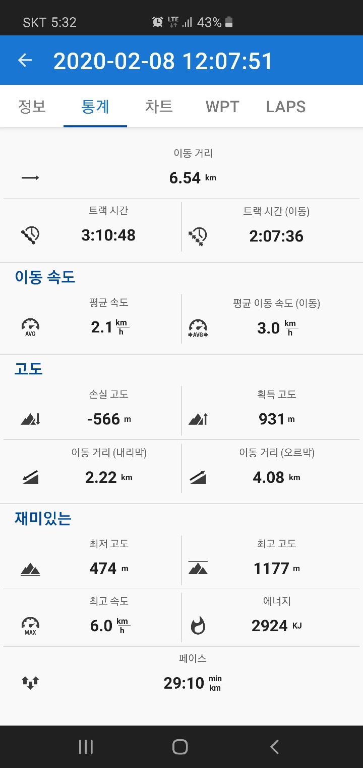 4. 산행거리 : 6.54km