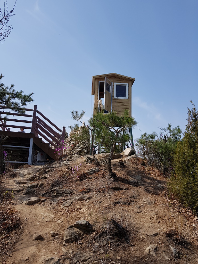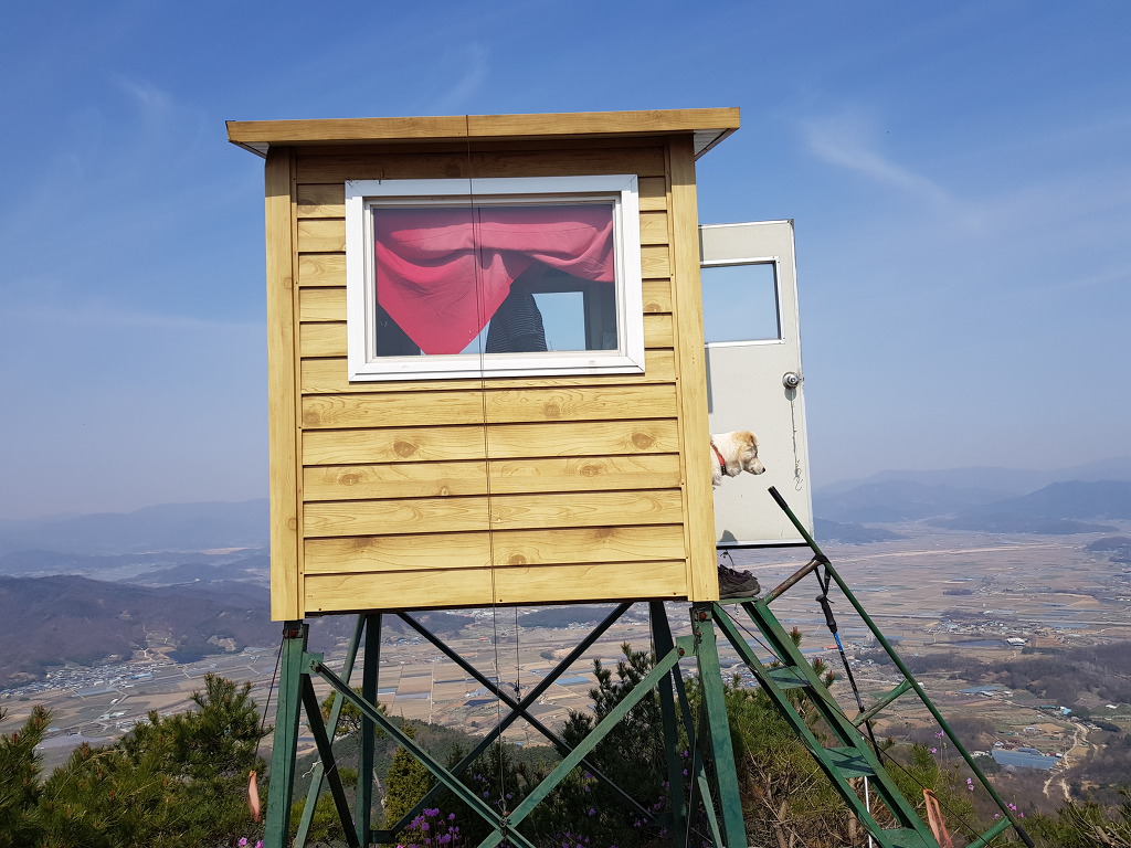 제석봉에 도착했는데, 산불초소에서 개가 짖어 댑니다.