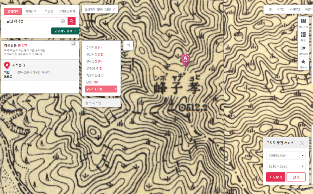 帝錫은 산 아래 동네 이름인 데, 어느 시기의 지리원 지형도에는 帝釋峰이다가 지금은 다시 帝錫峰이네요.