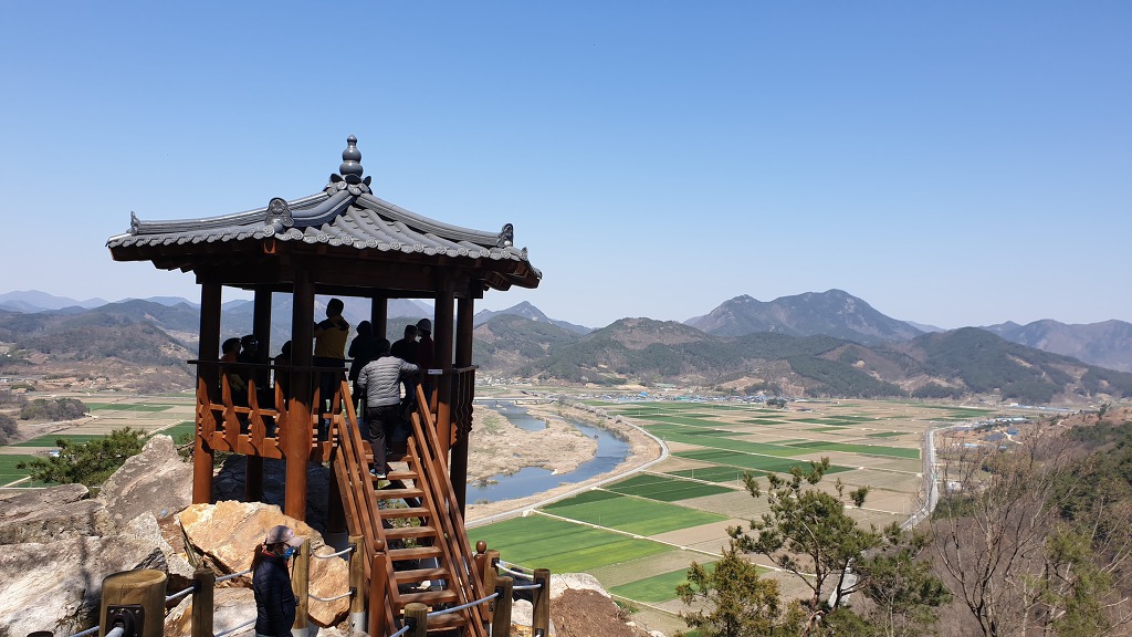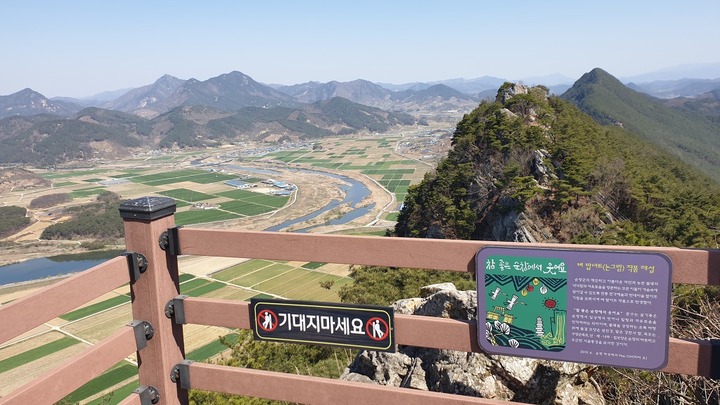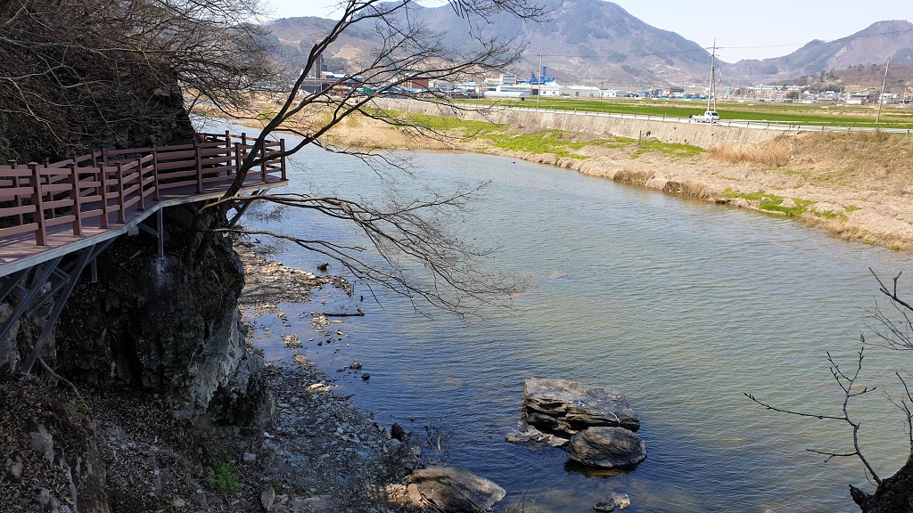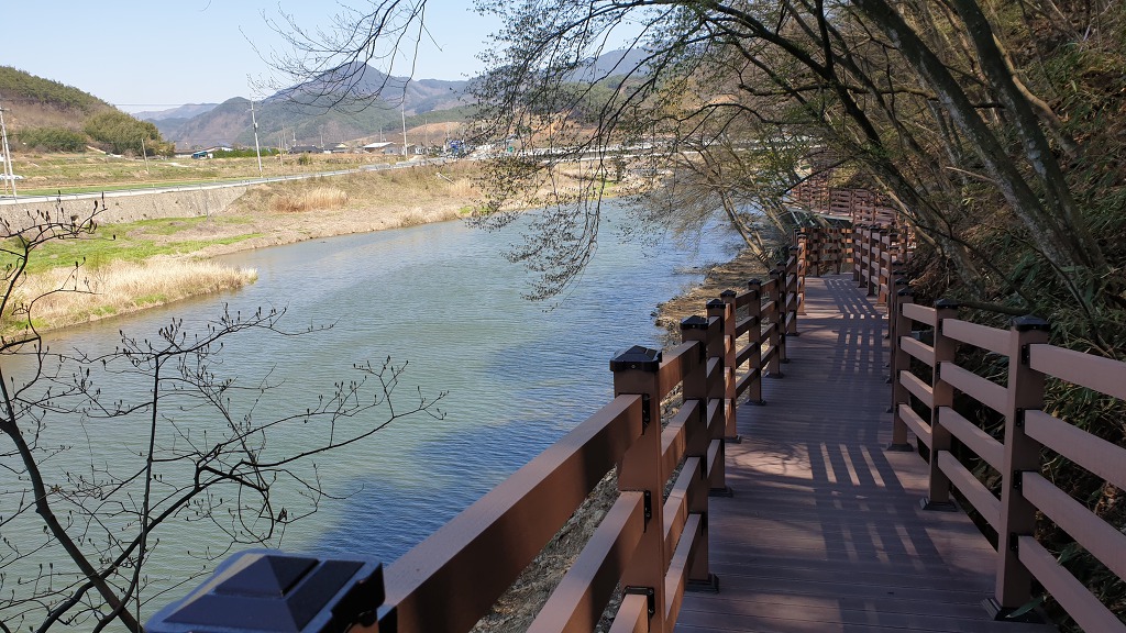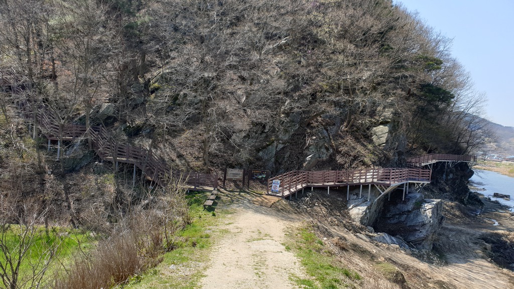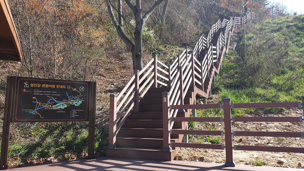 남산 정자를 우측으로 두고 좌측방향으로 하산하면 섬진강 둘레길 수변 절벽데크를 통해 신촌교로 진행합니다.