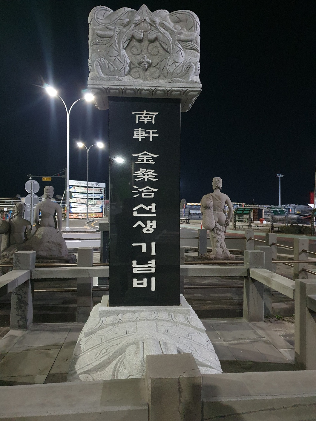 2시간을 각오하고 달려온 찻길이 무색하게도 우도까지 뱃길은 단지 10분였고 ^^ 항구에선 김찬흡이란 분을 기리는 기념비가 우리를 맞이해 주었습니다. 제주대학교 국문과 1회 졸업생으로 우도의 안평중학교에 재직하면서 우도팔경을 발굴하여 이름짓는 등 우도 홍보에 크게 기여하신 선생님이시라고. 뭐랄까 제주를 사랑하시는 마음에 전해졌네요.