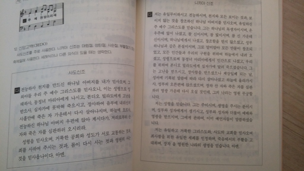설교 이전에 신앙 고백(사도신경 혹은 니케아 신경)을 한다는 점도 인상적이었습니다. 또 복음서 낭독 시간에도 향을 피우지 않고 일반 개신교처럼 낭독을 합니다.(일부 한국 개신교회에서는 이 복음서 낭독을 예배 중에 빼는 경우도 있는데, 개인적으로는 그리 바람직해보이지는 않습니다)